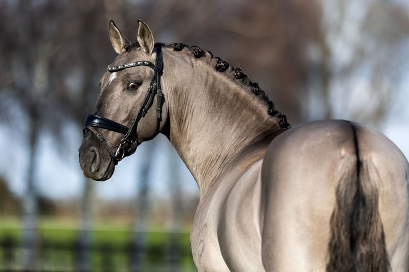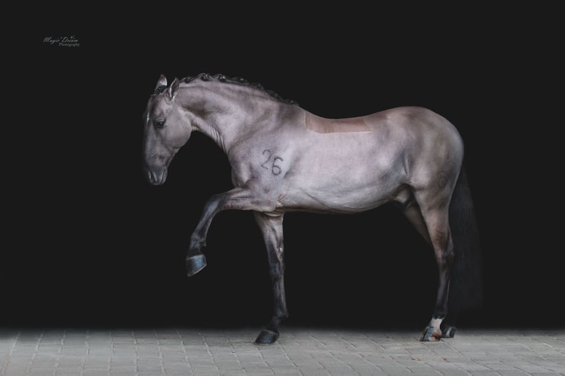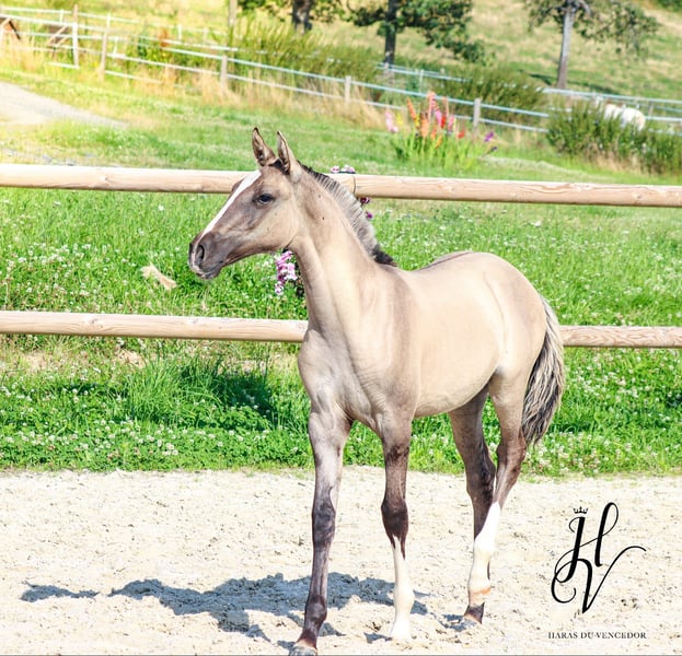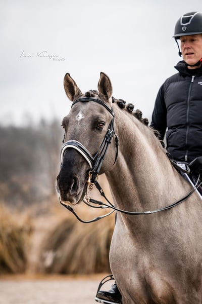 PIRO FREE! Homozygous Dun + Heterozygous Creme An absolute worldwide rarity is for sale: I-Don Malagueno is the only purebred Dun stallion approved for Stallion Book 1 Oldenburg (through dressage sport successes). He is also approved for Stallion Book 1 German Horse (ZfdP), Palomino, German Baroque Horse, Pinto and of course licensed by the APSL. He thus brings the rare DUN color with full breeding paper to warmblood breeding. He also has 1 CREME gene, which opens up a new opportunity for lightening in warmblood breeding. A stallion who not only impresses with his unique beauty and color genetics. Victorious in St. Georg, trained in Germany up to S** with an outstanding piaffe and a very good walk. He is also trained in Working Equitation up to Master Class and jumps excellently. Very fine in hand with a pleasant go. Absolutely comfortable to sit. He is also familiar with relaxed rides, work on the double lunge and long reins and eventing jumps. A real all-rounder. A complete professional when it comes to breeding. Very motivated and well-behaved on the Phantom with top semen quality. His foals impress all over the world with strong joints, lots of charm and closeness to people. Color genetics: DD/Ee/Crn/aa free of PSSM 1 & 2, WFFS, ECVM, very good x-rays available. Due to professional changes on my part, he is for sale in the right place. He is the perfect choice for an ambitious breeding operation that also enjoys a rideable sport horse with a large fan club. His website: www.oharlin-sb.com