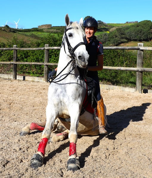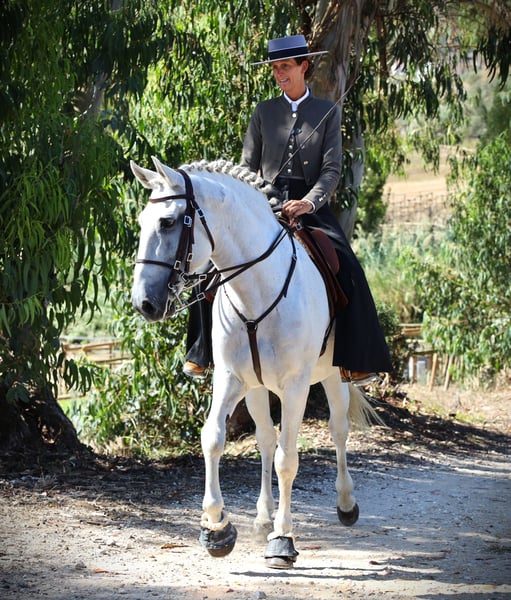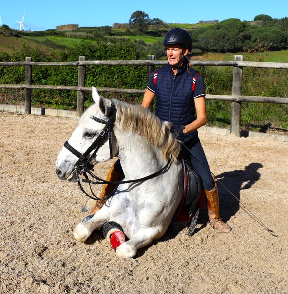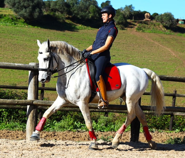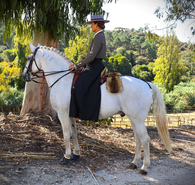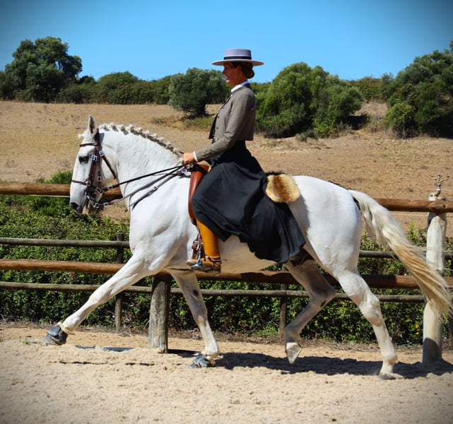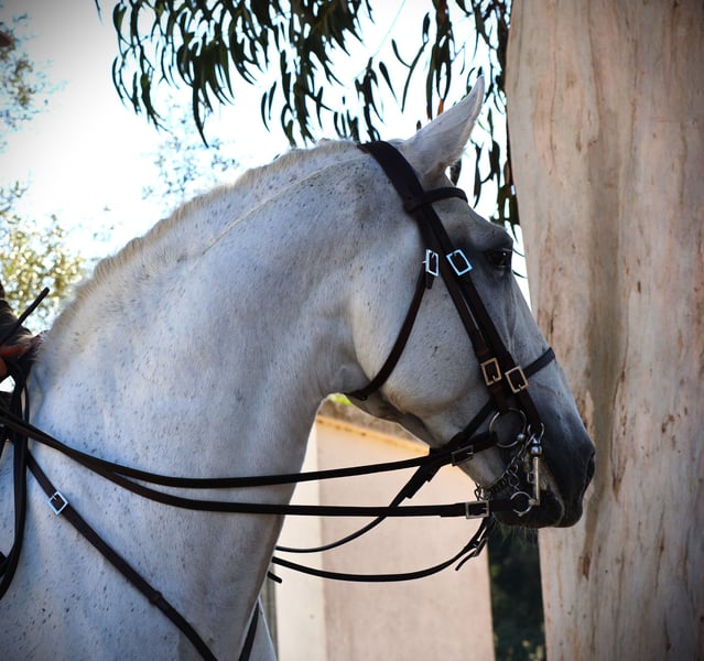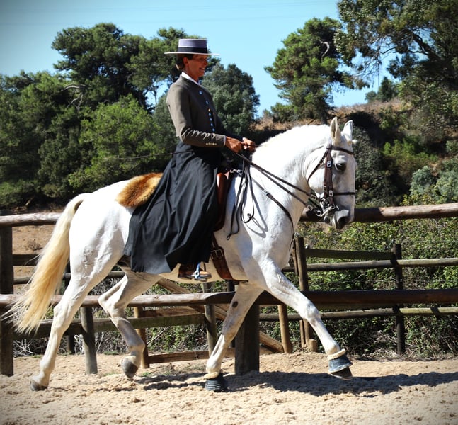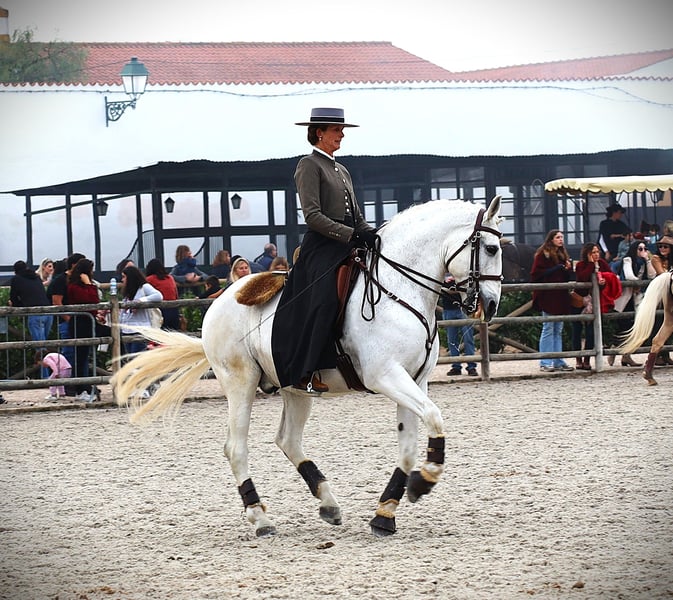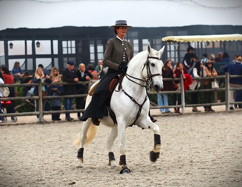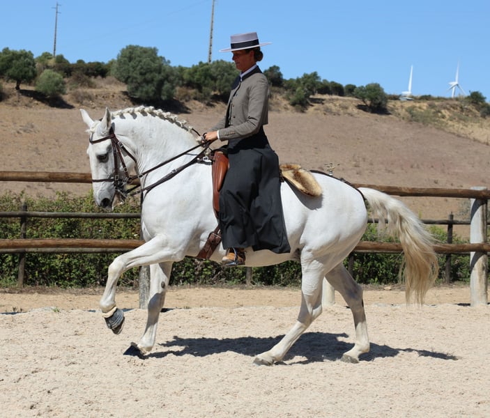 Our Hezaire is simply a perfect horse. He has excelled with us not only in competitions, including victories at Lusitano championships, but also as a schoolmaster, patiently teaching dressage fundamentals to riders from all over the world. Previously, he was active as a breeding stallion (producing colored foals, including blacks, see pedigree via Pagode/Trinco). He has competed at fairs and, this year, at Golegã. He is confident on all types of terrain, completely unshakable, and not at all stud-like, as he is such a reliable and secure horse without being boring. I cannot imagine a better all-rounder. We are selling him with a heavy heart, as we have discontinued our dressage training program due to age reasons, and he is essentially without work now. Since he is fit, healthy, and has never been ill, he can still teach a very special person a great deal. We reserve the right to choose his new owner, and if it doesn’t seem like a good fit, we may have to say no.