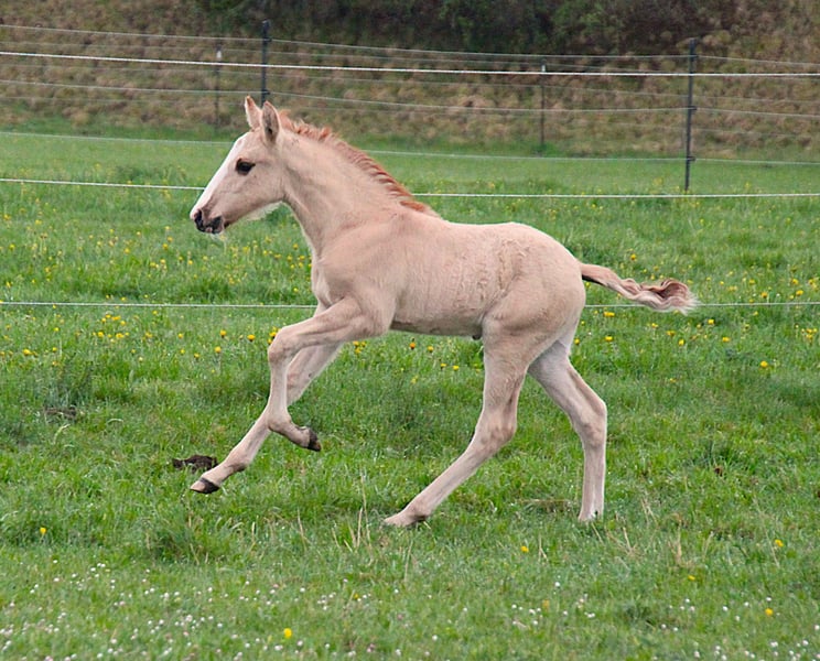 ⚜️Vamos-Asti geb. 31.03.2025⚜️ Vamos ist ein red dun, er trägt das Dun -Gene D/nd1. Er ist im Offenstall aufgewachsen, mit 24 Std. Zugang zur großen Koppel. Er kennt es, auch mit seiner Mama in der Box zu sein. Er kennt das Fohlen-ABC, er wird selbstverständlich regelmäßig entwurmt und mit Mineralien versorgt. Er ist an allem interessiert, ist nervenstark . Vamos hat gute Bewegungen und ist typisch für seine Rasse sehr wendig und in gutem Gleichgewicht. Vamos hat das APSL Papier, ist in Deutschland geboren. Geschätztes Endmaß + - 1,58-1,60 m. Mutter Quā 1,52 m ist ebenfalls eine red dun. Sie hat sehr gute Bewegungen, und ist typisch für die Lusitanos sehr wendig. Quā wurde angeritten, dabei hat sie sich als außergewöhnlich nervenstarke und kooperative gezeigt. Ihren guten Charakter, hat sie beim anreiten ebenfalls gezeigte. Guter Charakter und „klar im Kopf“ist für mich neben Gesundheit, das wichtigste Merkmal was ein Pferd besitzt sollte. Der Papa I-Don Malagueño 1,64 m ist ein Hengst der sich international bewiesen hat. Sein Exterieur und auch seine Leistungsbereitschaft sind außergewöhnlich. Siegreich bis Prix St Georg und durch Sporterfolge voll zugelassen für Hengstbuch 1 Warmblut. Auch er hat einen sehr lieben und guten Charakter und den „will to please“. Vamos steht in einer professionellen Hengstaufzucht. Der Platz könnte gerne übernommen werden. Wir wünschen uns für Vamos einen super Platz, bei Menschen die Pferdeverstand und Erfahrung haben. Für Fragen stehe ich gerne zur Verfügung.