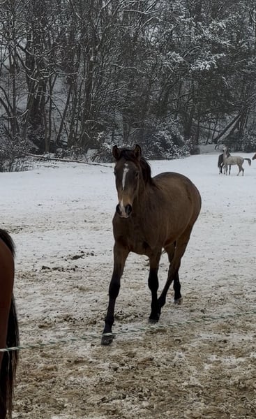 ⭐ Uncas – Exceptional Lusitano Foal in Rare Buckskin with Dorsal Stripe | Elite Lineage & Show Potential ⭐ Born on April 1, 2024 | Buckskin without Grey Gene | Approx. 16.1 hh expected Features: - Breed: Lusitano - Sex: Colt - Year of Birth: 2024 - Color: Buckskin - Height: 16.1 hh (estimated final height) With Uncas, I am offering a top-quality, typy, and genetically valuable Lusitano colt from outstanding lineage. His rare buckskin color with a prominent dorsal stripe and his expressive face with a distinctive marking make him a true eye-catcher. ⸻ 🔥 Exclusive Lineage – Half-brother of the renowned FUEGO FG Uncas is a genetically highly interesting young horse: • Sire: NAVALHEIRO (OPUS-72) – known for rideability, expression, and excellent movement quality • Half-brother to FUEGO FG, an internationally recognized Lusitano from exceptional breeding • No grey gene carrier, ideal for color-stable breeding lines This pairing is rare and especially valuable for breeding and sport. ⸻ ✨ Color, Type & Presence Uncas impresses with: • His rare buckskin color with a distinct dorsal stripe • A unique facial marking – absolute recognition factor • Baroque, compact conformation • Correct foundation and harmonious proportions • People-oriented, clear, and friendly character Estimated final height: approx. 16.1 hh – ideal for Working Equitation, classical dressage, and show. ⸻ 🕊️ Movement & Potential His movements are: • Spacious • Light-footed • Elastic • Powerful and rhythmically correct Thanks to his natural willingness to collect, agility, and excellent balance, he offers outstanding potential for: • Working Equitation • Baroque & Liberty Dressage • Show performances • Classical dressage He has that certain “something” that immediately stands out in the arena. ⸻ 🐎 Health & Upbringing Uncas is raised under the best conditions in Germany and receives everything a healthy young horse needs: • Proper foal management for a young stallion • High-quality forage & mineral feed • Familiar with halter and farrier • Fully vaccinated • Never been ill His handling is exemplary for his age – well-behaved, curious, and calm. ⸻ 💎 Why Uncas? Because he is a special young stallion with rarity value: ✔ Rare buckskin color with dorsal stripe ✔ Excellent lineage (half-brother of FUEGO FG) ✔ Expressive movements ✔ Baroque, compact type ✔ Clear mind & fine temperament ✔ Ideal for show, sport, and breeding ⸻ 📞 Contact & Viewing Uncas can be visited by appointment. I look forward to serious inquiries and am happy to take the time for a personal conversation.