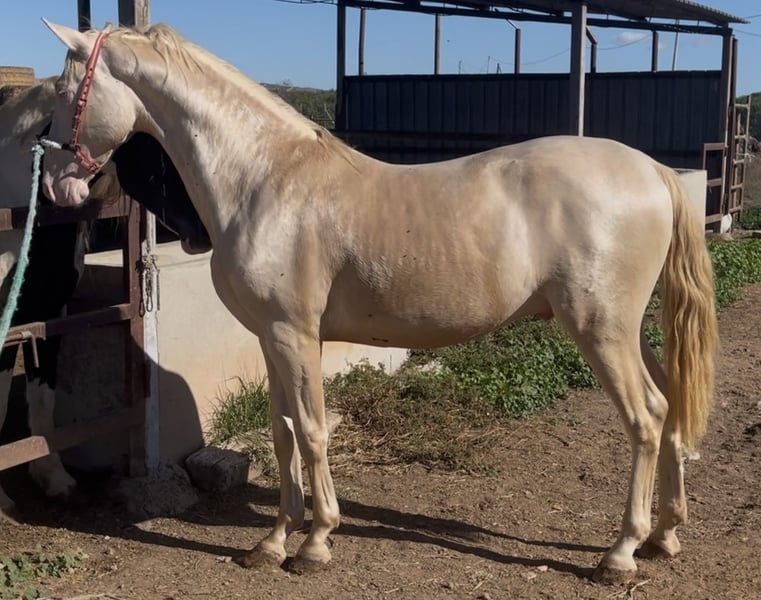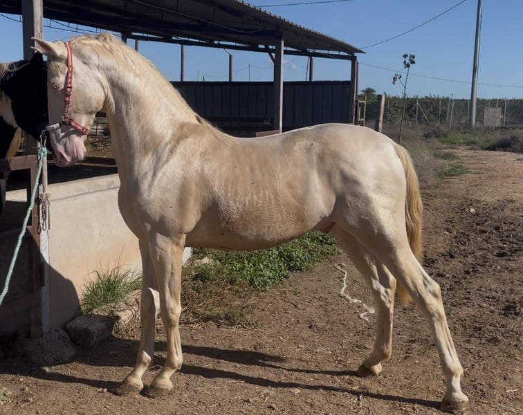 Potro Cremello con algo más de 2 años y más de 1,65 . Mucho hueso la cara ligeramente acarnerada Potro ideal para cualquier disciplina y una capa muy llamativa