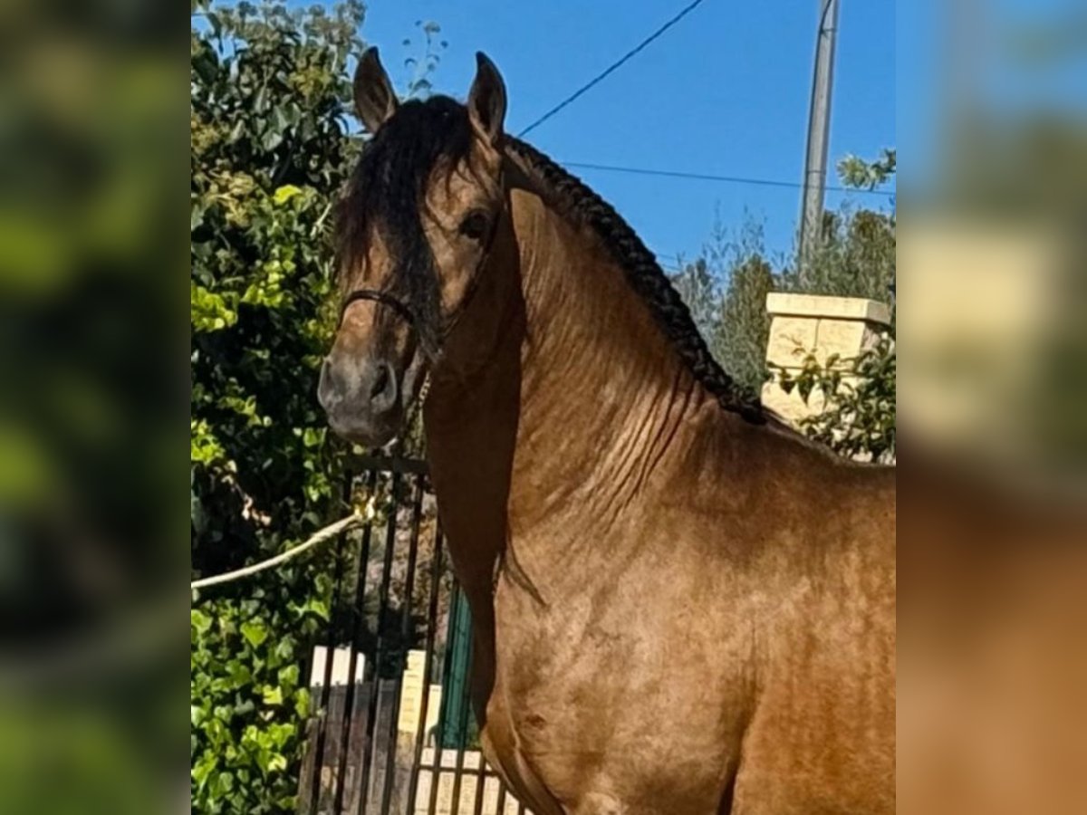 Zuzu is an absolute eye-catcher: this impressive stallion with his unique color has a baroque build, a long neck, and a fine head. He is also very well ridden and has mastered the half-pass, flying changes, pirouettes, and is beginning to learn the piaffe. Under saddle, he is extremely rideable and eager to perform. He is fearless and has a great character. He would certainly do well in the dressage arena as well as in working equitation or show. He comes with an equine passport (without pedigree), a comprehensive pre-purchase examination with all X-rays, and is free of piroplasmosis. Location: Spain – transport can be arranged worldwide