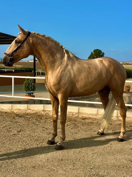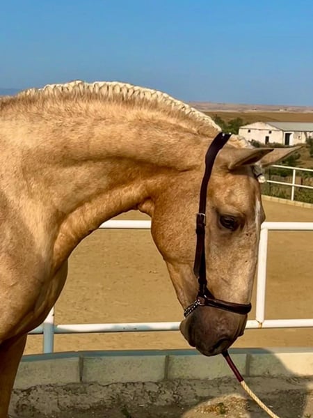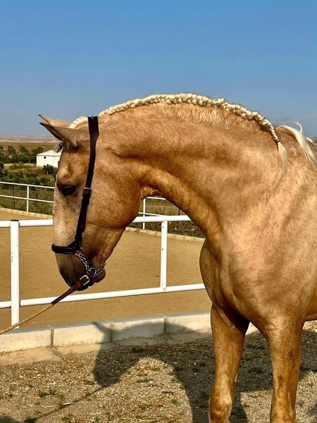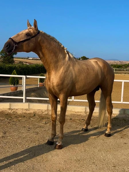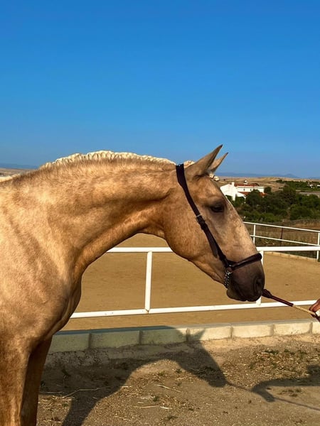 golden horse ☀️ This is a 3yro PSL stallion with already 162/163cm in a beautiful golden palomino colour and top movements. He is already massive and strong and will be without doubts absolutely impressive as an adult stallion. If you want to know more about him, send me a PM or WhatsApp 00491786997334. Jasmin from Top-Lusitanos