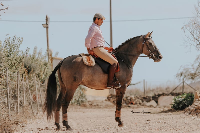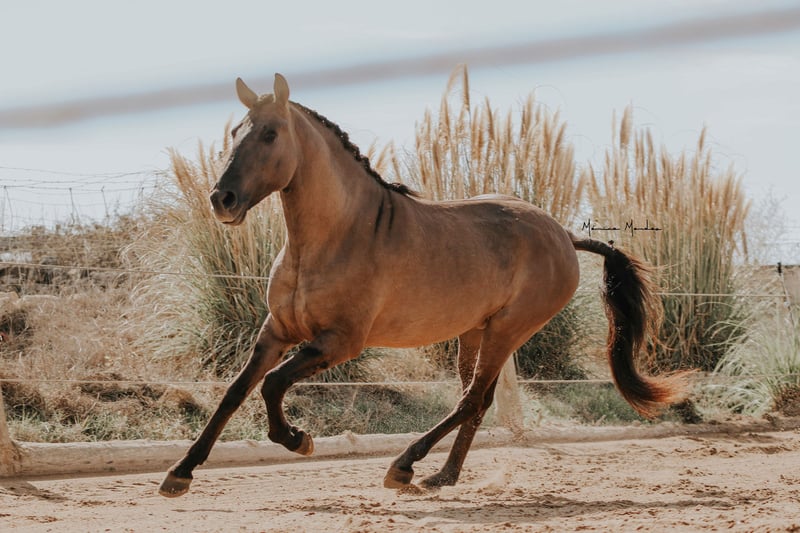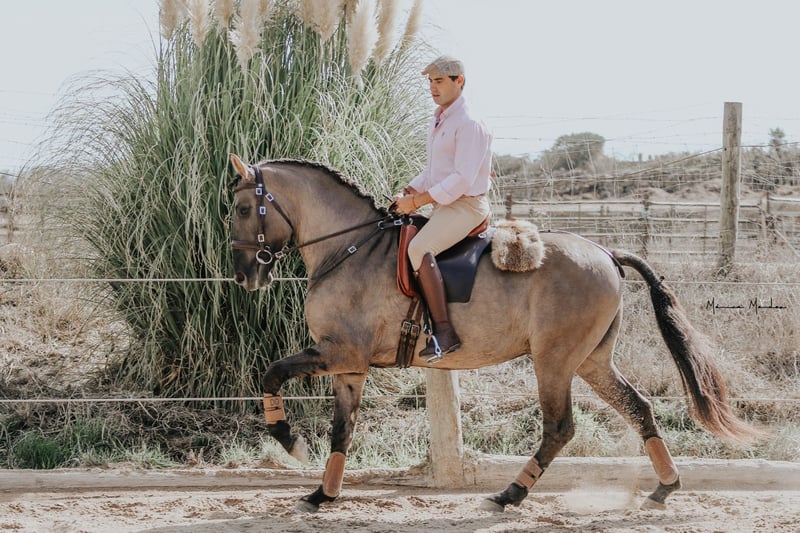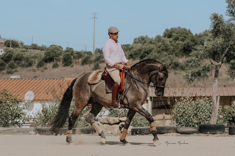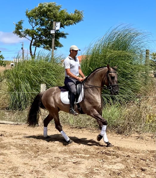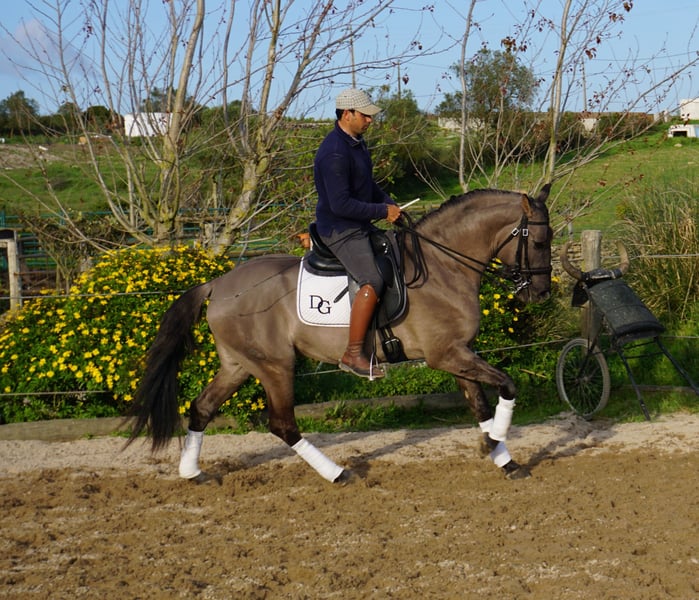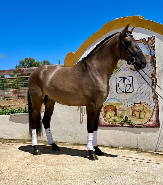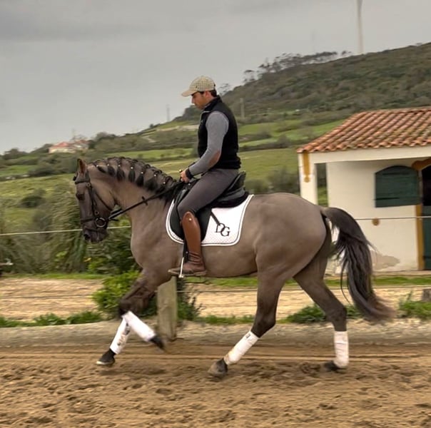 Charismatic all-rounder with nerves of steel – RATO ✨ Meet Rato – an impressive young Lusitano stallion, born in 2021, who catches everyone's eye with his rare grullo coat and charisma. But Rato is much more than just beautiful – he impresses with intelligence, sociability, and a strong work ethic. Character & Training Rato has been professionally and gently started under saddle – confident, trusting, and always cooperative. He is currently in training with an experienced Working Equitation rider and demonstrates himself as a calm, reliable, and focused partner – even in new situations. Working Equitation & Cattle Work Already introduced to Working Equitation obstacles, Rato shows himself to be fearless and strong-minded. Even during cattle work, he remains composed – a clear sign of his balanced character. Key Data Born: 2021 Current height: approx. 157 cm (still growing) Expected final height: approx. 158–160 cm Conformation: Baroque type with a deep chest Health: good vet check Versatile Talent Rato is an exciting young partner for a variety of disciplines: Dressage, Working Equitation, groundwork, circus lessons, or relaxed trail rides – this young stallion has the talent and character for everything. Conclusion: A rare opportunity to acquire a young Lusitano with an extraordinary appearance, excellent temperament, and great potential. His pedigree is impressive! His sire is a breeding stallion from the famous Ortigao Costa stud, and on his maternal side, you can even find two notable stallions, Mexico and Riopele! www.cavalo-lusitano.net