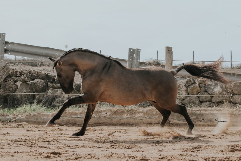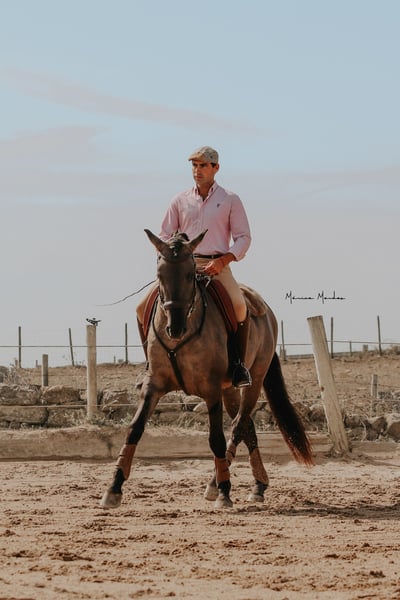 Charyzmatyczny koń wszechstronny z żelaznymi nerwami – RATO ✨ Poznaj Rato – imponującego młodego ogiera lusitano, urodzonego w 2021 roku, który swoim rzadkim umaszczeniem grullo i wyjątkową prezencją przyciąga spojrzenia. Jednak Rato to znacznie więcej niż tylko piękno – zachwyca inteligencją, otwartością na kontakt z ludźmi oraz silną chęcią do pracy. Charakter i szkolenie Rato został profesjonalnie i delikatnie wytrenowany do jazdy – pewny siebie, ufny i zawsze chętny do współpracy. Obecnie bierze udział w treningach u doświadczonego jeźdźca od working equitation i sprawdza się jako spokojny, niezawodny i skoncentrowany partner – także w nowych sytuacjach. Working Equitation i praca z bydłem Już wprowadzony do przeszkód w working equitation, Rato wykazuje się odwagą i odpornością na stres. Podczas pracy z bydłem zachowuje spokój – co świadczy o jego zrównoważonym charakterze. Dane techniczne Urodzony: 2021 Aktualny wzrost w kłębie: ok. 157 cm (wciąż rośnie) Przewidywany końcowy wzrost: ok. 158–160 cm Budowa: typ barokowy z dużą głębokością klatki piersiowej Zdrowie: dobre wyniki badań AKU Wszechstronny talent Rato to obiecujący młody partner do różnorodnych zastosowań: jazdy konnej, working equitation, pracy na lonży, cyrkowych figur, czy spokojnych przejażdżek terenowych – ten młody ogier posiada talent i charakter, które pozwalają mu na wszystko. Podsumowanie: To rzadka okazja, by nabyć młodego ogiera lusitano o wyjątkowej urodzie, znakomitym charakterze i dużym potencjale. Jego pochodzenie robi wrażenie! Jego ojciec to ogier reprodukcyjny z słynnej hodowli Ortigao Costa, a w rodowodzie matki znajdują się aż dwa prestiżowe ogiery: Mexico i Riopele! www.youtube.com/watch?v=A7eElIlR_XA&t=4s www.cavalo-lusitano.net