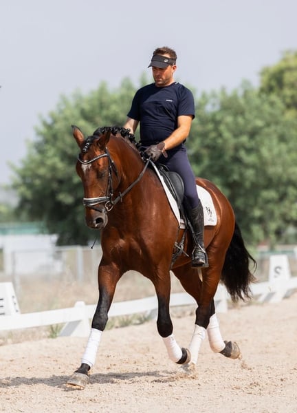 On behalf of our client: Rio da Norinha – a dressage horse for the highest standards! Absolute rideability paired with willingness to perform and three excellent gaits make Rio a horse in a class of his own! Rio has enjoyed a classical training and already masters the half-pass, jumps first series changes, piaffe and pirouette! Everything comes easily to him and he is always highly focused! He already has competition experience and always concentrates on his rider, even in unfamiliar surroundings! Even in a large, mixed stable with 180 horses, Rio shows no stallion behaviour whatsoever! The horse comes from the very best breeding and has a clear head and a great character. Of course, Rio has been fully tested with all X-rays and is also free of piroplasmosis. He has full PSL papers with a top pedigree and comes from the best breeding! Location: Spain – transport can be arranged worldwide.