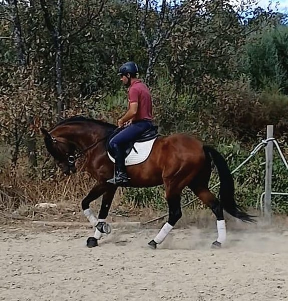 Nous vous présentons ce magnifique Lusitanien, Odin, un cheval qui peut être monté par un(e) jeune cavalier(e). Il mesure 1,63 m et il attaché à l’homme. Cependant, à moins d’être castré, ce qui n’est pas le cas, il est difficile avec se congénères. Il évolue en toute sécurité en manège dans les terres du Portugal à Terlamonte. A jour de ses soins vétérinaires, il embarque sans difficulté pour tous types de transports. Nous lui cherchons une nouvelle maison au Portugal ou en France où on prendra soin de lui. Radios sur demande à votre charge.