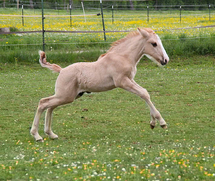 ⚜️Vamos-Asti geb. 31.03.2025⚜️ Vamos ist ein red dun, er trägt das Dun -Gene D/nd1. Diese Farbe ist in der Lusitanozucht sehr selten. Das Dun-Gen ist ein genetischer Aufhellungsfaktor bei Pferden, der die Fellfarbe verdünnt und gleichzeitig sogenannte Wildzeichnungen wie einen dunklen Aalstrich, Zebrastreifen an den Bein und ein Schulterkreuz hervorruft. Er ist im Offenstall aufgewachsen, mit 24 Std. Zugang zur großen Koppel. Er kennt es, auch mit seiner Mama in der Box zu sein. Er kennt das Fohlen-ABC, er wird selbstverständlich regelmäßig entwurmt und mit Mineralien versorgt. Er ist an allem interessiert, ist nervenstark und spielt sehr gerne mit seinem gleichaltrigen Freund Vegas. Vamos hat gute Bewegungen und ist typisch für seine Rasse sehr wendig und in gutem Gleichgewicht. Geschätztes Endmaß + - 1,58-1,60 m. Mutter Quā 1,52 m ist ebenfalls eine red dun. Sie hat sehr gute Bewegungen, und ist typisch für die Lusitanos sehr wendig. Quā wurde angeritten, dabei hat sie sich als außergewöhnlich nervenstarke und kooperative gezeigt. Ihren guten Charakter, hat sie beim anreiten ebenfalls gezeigte. Guter Charakter und „klar im Kopf“ist für mich neben Gesundheit, das wichtigste Merkmal was ein Pferd besitzt sollte. Der Papa I-Don Malagueño 1,64 m ist ein Hengst der sich international bewiesen hat. Sein Exterieur und auch seine Leistungsbereitschaft sind außergewöhnlich. Siegreich bis Prix St Georg und durch Sporterfolge voll zugelassen für Hengstbuch 1 Warmblut. Auch er hat einen sehr lieben und guten Charakter und den „will to please“. Ein Platz in einer professionellen Hengstaufzucht, mit der wir seit vielen Jahren zusammenarbeiten , ist für Vamos reserviert. Der Platz kann gerne übernommen werden. Anfang Oktober wird Vamos in diese Hengstaufzucht umziehen. Wir wünschen uns für Vamos einen super Platz, bei Menschen die Pferdeverstand und Erfahrung haben. Lusitano-via-Claudia.de