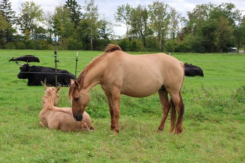⚜️Vamos-Asti born 31.03.2025⚜️ Vamos is a red dun, carrying the Dun gene D/nd1. This color is very rare in Lusitano breeding. The Dun gene is a genetic dilution factor in horses that lightens the coat color while simultaneously producing so-called wild markings such as a dark dorsal stripe, zebra stripes on the legs, and a shoulder cross. He has grown up in a loose housing system with 24-hour access to a large pasture. He is accustomed to being in the box with his mother. He knows the basics of foal training and is regularly dewormed and provided with minerals. He is curious about everything, has a strong nerve, and enjoys playing with his peer friend Vegas. Vamos has good movement and is very agile and well-balanced, typical for his breed. Estimated final height is around 1.58-1.60 m. His mother Quā, measuring 1.52 m, is also a red dun. She has very good movement and is very agile, typical for Lusitanos. Quā has been backed and has shown herself to be exceptionally strong-minded and cooperative. She has also demonstrated her good character during the backing process. A good character and being "clear-headed" are, for me, the most important traits a horse should possess alongside health. The father I-Don Malagueño, measuring 1.64 m, is a stallion who has proven himself internationally. His conformation and willingness to perform are exceptional. He has won up to Prix St. Georges and is fully approved for the Hengstbuch 1 Warmblood due to his sporting successes. He also has a very kind and good character and a "will to please." A place in a professional stallion breeding facility, with which we have been collaborating for many years, is reserved for Vamos. This place can be taken over. Vamos will move to this stallion breeding facility in early October. We wish for Vamos a great home with people who have an understanding of horses and experience. Lusitano-via-Claudia.de
