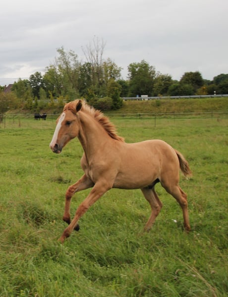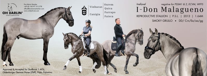 ⚜️Vamos-Asti geboren op 31.03.2025⚜️ Vamos is een red dun, hij draagt het Dun-gen D/nd1. Deze kleur is in de Lusitano-fokkerij zeer zeldzaam. Het Dun-gen is een genetische verlichtingsfactor bij paarden, die de vachtkleur verdunt en tegelijkertijd zogenaamde wildtekeningen zoals een donkere aalstreep, zebrastripes op de benen en een schouderkruis oproept. Hij is opgegroeid in een open stal, met 24 uur toegang tot de grote wei. Hij is eraan gewend om ook met zijn mama in de box te zijn. Hij kent het veulen-ABC, wordt natuurlijk regelmatig ontwormd en voorzien van mineralen. Hij is in alles geïnteresseerd, is zenuwsterk en speelt heel graag met zijn leeftijdsgenoot Vegas. Vamos heeft goede bewegingen en is typisch voor zijn ras zeer wendbaar en in goede balans. Geschat eindformaat + - 1,58-1,60 m. Moeder Quā 1,52 m is ook een red dun. Zij heeft zeer goede bewegingen en is typisch voor de Lusitanos zeer wendbaar. Quā is onder het zadel gebracht, waarbij ze zich als uitzonderlijk zenuwsterk en coöperatief heeft getoond. Haar goede karakter heeft ze ook tijdens het onder het zadel brengen laten zien. Een goed karakter en "helder in het hoofd" is voor mij naast gezondheid het belangrijkste kenmerk dat een paard zou moeten bezitten. Vader I-Don Malagueño 1,64 m is een hengst die zich internationaal heeft bewezen. Zijn exterieur en ook zijn bereidheid om te presteren zijn uitzonderlijk. Overwinnend tot Prix St Georg en door sportieve successen volledig goedgekeurd voor Hengstenboek 1 Warmbloed. Ook hij heeft een zeer lief en goed karakter en de "will to please". Een plek in een professionele hengstenfokkerij, waarmee we al vele jaren samenwerken, is voor Vamos gereserveerd. De plek kan graag overgenomen worden. Begin oktober zal Vamos naar deze hengstenfokkerij verhuizen. Wij wensen voor Vamos een super plek, bij mensen die paardenverstand en ervaring hebben. Lusitano-via-Claudia.de