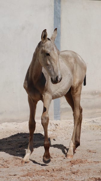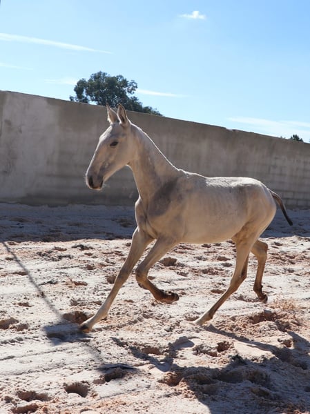 VALETE – Strahlender Buckskin-Absetzer mit Spitzen-Abstammung Merkmale: - Rasse: Lusitano - Geschlecht: Hengst - Geburtsjahr: 2025 - Farbe: Buckskin - Stockmaß: Endstockmaß geschätzt 164cm Vater: ADÁGIO • Mutter: hoch gekört • Gen-getestet ⸻ 🌟 Besonderes Exterieur & Genetik VALETE ist ein typvoller Buckskin-Hengstabsetzer aus 2025, dessen Farbgenetik bereits bestätigt ist. Sein glänzendes Fell und seine harmonischen Linien machen ihn jetzt schon zu einem echten Hingucker. • Buckskin – genetisch getestet • Kräftiges Fundament und sehr gute Gliedmaßen • Ausgeglichenes, korrektes Exterieur ⸻ 🧬 Hochkarätige Abstammung Vater: ADÁGIO – international erfolgreich in der Working Equitation und Stierkampfarbeit, klarer Kopf, enorme Rittigkeit und unglaubliche Nervenstärke. Mutter: korrekt gebaut, hoch gekört, besonders brav und leistungsbereit. Diese Anpaarung garantiert Klarheit im Kopf, beste Voraussetzungen für Sport & Freizeit, sowie ein hohes Talent für Working Equitation. ⸻ 🧠 Charakter & Aufzucht VALETE zeigt sich bereits jetzt als besonders gelassener, neugieriger und gut zu handelnder junger Hengst. • Lässt sich problemlos anfassen • Zeigt einen klaren, unerschütterlichen Charakter • Lebt artgerecht im Herdenverband auf dem Campo • Kennt verschiedene Untergründe und wächst robust & gesund auf ⸻ 🏅 Perspektive Mit seiner Abstammung, seinem Exterieur und seinem Wesen bringt VALETE alles mit, um später ein leistungsstarker Sportpartner oder ein solider, nervenstarker Freizeitkumpel zu werden. ⸻ 📩 Kontakt Gerne sende ich weitere Fotos und Videos oder beantworte offene Fragen. VALETE kann ab sofort reserviert werden.