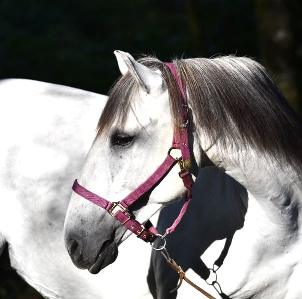 Une jument portugaise très typée, au style très baroque, avec beaucoup de profondeur de poitrine et des mouvements amples et dynamiques, qui font oublier qu’elle ne mesure que 1,59 m. Elle est très fière et dotée d’un caractère fort, avec beaucoup de puissance, sans être nerveuse. Étant donné mon âge, cette énergie deviendra trop importante pour moi à long terme (je ne suis pas toute jeune), je recherche donc une cavalière ou un cavalier plus jeune, qui prendra plaisir à développer cette énergie pour lui-même. Li est solidement dressée selon les principes classiques, maîtrise toutes les figures de côté en pas et en trot, piaffe et passage, en revanche, le galop n’est pas encore totalement développé. Elle vit en paddock, son comportement social est impeccable, mais comme elle est plutôt dominante, je pourrais également envisager qu’elle soit satisfaite d’une stalle paddock avec un accès à l’extérieur toute la journée.
