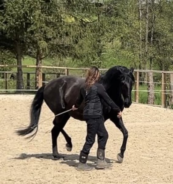 Lusitano Rappstute – in liebevolle Hände abzugeben Wir suchen für unsere wunderschöne Lusitano-Stute (Rappstute, ohne Abzeichen, mit Papieren) ein passendes Zuhause. Sie wird nur schweren Herzens abgegeben, da wir ihr aufgrund der Haltungsbedingungen am eigenen Hof (ganzjährige Weidehaltung in der Gruppe) nicht gerecht werden können. Die Stute benötigt eingeschränkte Weidezeiten, sowie Heu bester Qualität oder besser noch Heulage oder bedampftes/ gewässertes Heu. Unter diesen Bedingungen ist sie topfit und kerngesund. Wird darauf nicht geachtet, reagiert sie empfindlich (Heustauballergie/ EMS). Offenstallhaltung mit angepasstem Fütterungsmanagement ist daher Voraussetzung. Charakter & Ausbildung: • Sehr sensibel und superfein an den Hilfen → kein Anfängerpferd • Liebt Bodenarbeit und Dressurarbeit auf dem Platz • Beherrscht alle Seitengänge, usw. und zeigt sich dabei motiviert und lernfreudig Wir wünschen uns für sie: Einen Platz bei erfahrenen, einfühlsamen Pferdemenschen, als Zuchtstute oder Beitstellpferd, der/ die mit ihrer Sensibilität umgehen können und ihr die notwendige Haltung und Zuwendung bieten können. Abgabe nur in wirklich geeignete Hände und in bestes Zuhause.