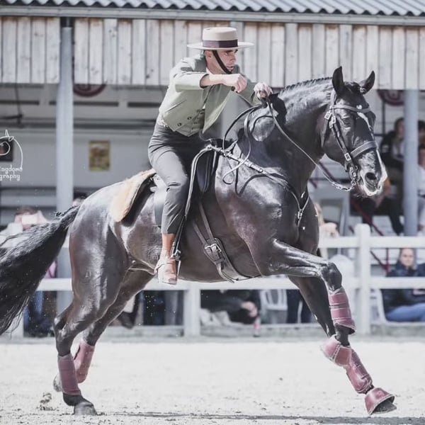 Na sprzedaż piękna klacz rasy lusitano, urodzona w 2024 roku, czerviec. Maść: kara. Wzrost: do 160 cm. Koń o barokowej, szlachetnej i poprawnej budowie, idealny dla osób ceniących elegancję i siłę. Świetny wybór dla miłośników urodziwych i wszechstronnych koni. Klacz będzie odpowiednia jako luksusowy koń rodzinny, koń do hobby, do sportu, klasycznego ujeżdżenia lub akademickiej sztuki jeździeckiej. Idealna dla kogoś z doświadczeniem, kto chciałby przygotować konia według własnych preferencji. Klacz posiada podstawowe nawyki i umie się dobrze poruszać w codziennej obsłudze; ze względu na wiek jest jednak bez dalszego treningu. Zaszczepiona, odrobaczona. Klacz znajduje się w Czechach, region Wysoczyzna. Po więcej informacji oraz w celu umówienia się na obejrzenie prosimy o kontakt. Przy szybkiej decyzji – zniżka.