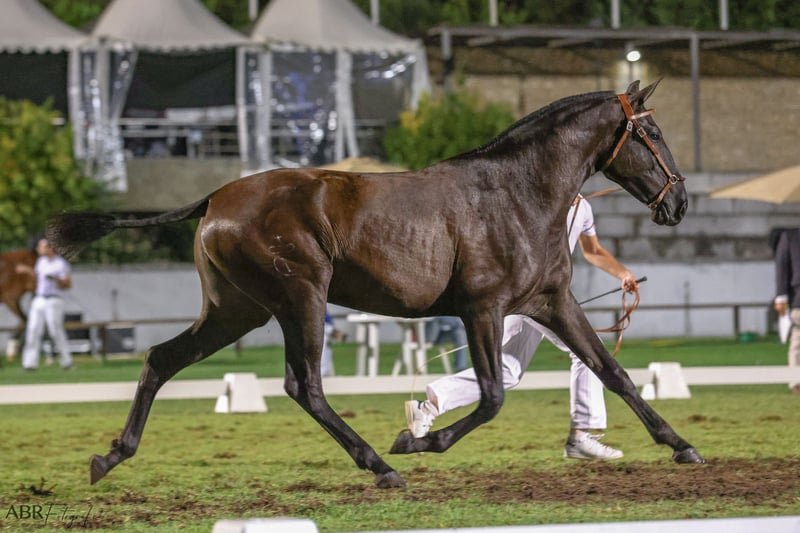 Serenata is a baroque young black mare with a small white snowflake on her forehead, and she outshines many stallions with her impressive physique. She was born at our stud farm (www.coudelaria-linda-oliveira.com) and enjoyed her childhood and youth in a herd environment, while also developing a daily connection with humans. As a result, she is a very sweet and people-oriented young lady who is at the beginning of her career as a riding horse. Now, at three and a half years old, she has been stabled, lunged, worked on the ground, and has recently been gently backed. She impresses us with her eagerness to learn and willingness to cooperate. A gem that will surely shine, she has an enormous presence and will be a loyal companion to her person. Of course, she still needs time in her training and can therefore stay with us for basic training. This is the opportunity to secure this magnificent jet-black Lusitano mare, as there are not many comparable horses available. Her pedigree is certainly interesting for breeding, and she can pass on the sought-after and rare black color in Lusitanos. She was successfully presented as a two-year-old at the young mares festival in Cascais. We would be happy to provide more videos and information via WhatsApp at +49 17644482124.