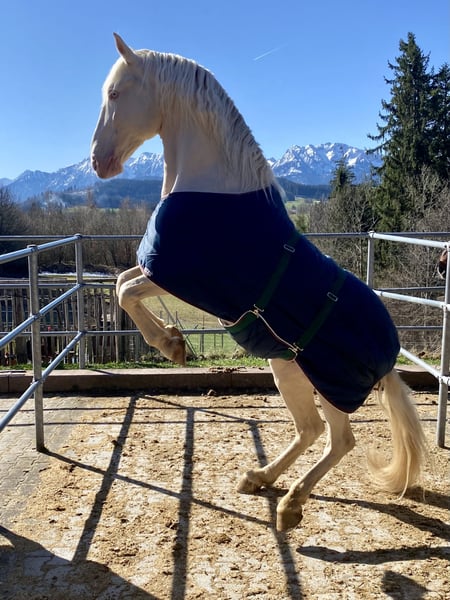 Fado hat einen Charakter aus Gold, immer lieb zu Menschen. Aber er testet zuerst einmal, wer der Chef im Ring ist. Man muss ihn vom ersten Moment an von sich überzeugen. Dann ist er aber sehr kooperativ und hat Freude am Lernen. Er hat keine Unarten, ist absolut Geländesicher. Er ist solide ausgebildet und kennt Piaffe, Passage und Galoppwechsel - allerdings sollte es weiter perfektioniert werden. Der Stall verfügt über eine Reithalle, Aussenreitplatz und Longierhalle.