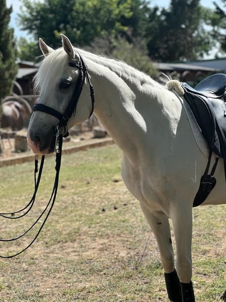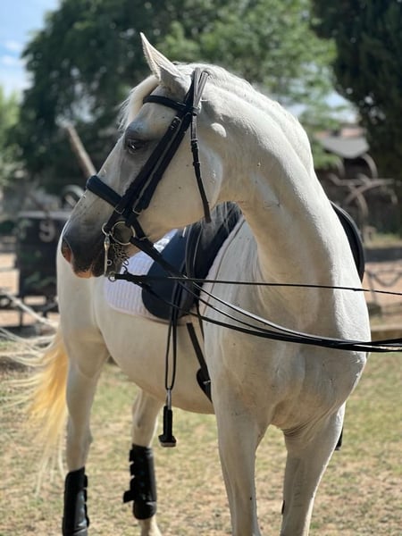 Gaudi Pur cheval lusitanien avec papiers. Hauteur 1,58 Grive Année 2011 Hongre Idéal pour le dressage et le saut d'obstacles Il a été au champ et a participé à de nombreux événements. Bons mouvements Allongement et facilité de rassembler Cessions de jambes, reculs intérieurs, traversées, renverses, appuis, galops au trot. Initié aux changements de pied, au piaffer et aux allures espagnoles. Pour toute question, appelez 696613777