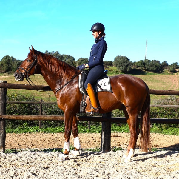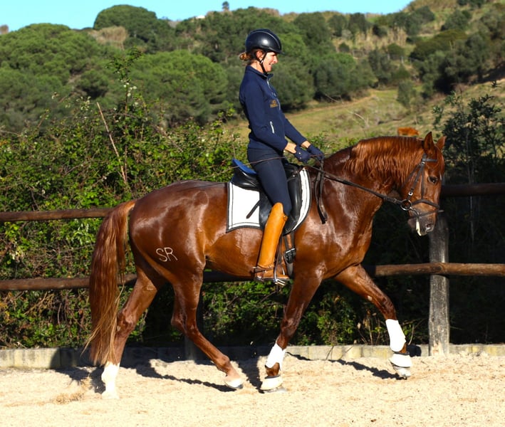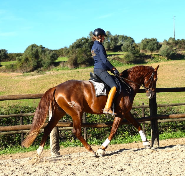 Rubio SR was born, raised, and started here. He is a well-mannered and easygoing horse. Suitable for amateurs. X-rays are available. He is another descendant of Imperador de Cabeçao, a Grand Prix stallion.