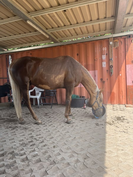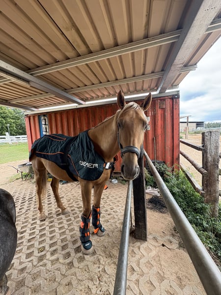 C’est avec le cœur lourd que nous devons nous séparer de notre Nuestro. Nuestro a 4 ans, mesure un peu plus de 1,70 m et est un hongre Lusitanien. Il est ferré et, dans son caractère, c’est un petit farceur. En main, il est un véritable trésor. Il n’a aucune mauvaise habitude, est plutôt sensible, mais totalement courageux. Il accepte tout : brossage, parage, douche, longe, promenades, ferrage et chargement ne posent aucun problème. Sous la selle, il marche volontiers dans toutes les allures. Il connaît également la sortie en duo, et en main, il se montre très obéissant. Il est monté aussi bien en manège qu’en extérieur par une fille de 10 ans, qui veille toujours bien sur lui. C’est pourquoi nous pouvons envisager de le confier à un enfant ou à un binôme mère-enfant. Cependant, il n’est pas adapté, compte tenu de son âge, pour des cavaliers débutants ou pour un usage exclusivement enfantin. Nui souffrait d’un bruits de gorge, qui a été opéré en novembre. Il bénéficie désormais du temps nécessaire pour récupérer. Pendant cette période, il reste à nos côtés, et il reprendra l’entraînement en 2026. Un bilan sanguin complet, sans anomalies, a été effectué. L’asthme a été exclu. Tous les résultats sont disponibles à la consultation. Nous souhaitons lui trouver un foyer où il sera accepté tel qu’il est et où il pourra continuer à évoluer. Nui aime beaucoup le travail à pied, les sorties en extérieur, et il adore également sauter. Il sera confié uniquement à un groupe de hongres, car il a tendance à mordre les juments (mais pas systématiquement). Son équipement, ainsi qu’une selle adaptée, peuvent être achetés séparément. Une séance d’essai ne sera pas possible pour le moment, la décision dépendra de son état de santé au moment venu. Priorité au bien-être ! Nous tenons à ce qu’il trouve une famille qui saura prendre soin de lui comme il le mérite.