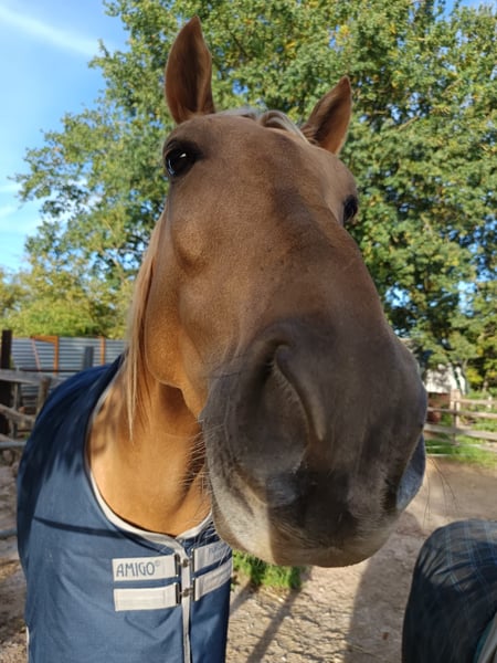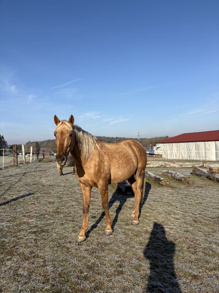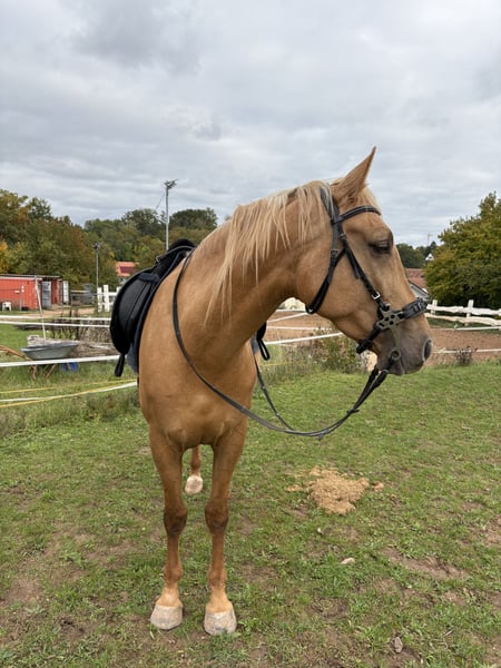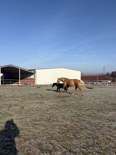 Con mucho pesar, tenemos que despedirnos de nuestro Nuestro. Nuestro tiene 4 años, mide un poco más de 1,70 m y es un caballo lusitano. Está sin herrar y, en cuanto a carácter, es un pequeño travieso. En el manejo, es un verdadero tesoro. No tiene malos hábitos, es algo sensible, pero totalmente valiente. Permite que le hagan todo: cepillado, herraduras, ducha, guía, paseos, trabajo con el herrador y carga sin problema alguno. Bajo la montura, camina tranquilamente en todos los gaits. También está acostumbrado a pasear en pareja, y en mano va muy bien. Actualmente, es montado por una niña de 10 años tanto en el paddock como en el campo, y siempre la cuida muy bien, por lo que también podemos imaginarlo como un caballo para niños o para un tándem madre-hijo. Sin embargo, no es apto como caballo exclusivamente infantil o para principiantes, ya que su entrenamiento aún está en marcha. La base ya está sentada; ahora puede comenzar la verdadera formación de Nui. Ideal para personas que disfrutan de la autoformación. Nui fue un caballo con respiración por el cuello, pero en noviembre fue sometido a una operación. En 2026, retomará su entrenamiento a pleno rendimiento. Se dispone de un análisis de sangre completo sin deficiencias. Se descartó asma. Todos los informes están disponibles para su consulta. Ahora puede llevar una vida normal y participar en competiciones. Buscamos un hogar donde sea aceptado tal como es y donde siga siendo promovido. A Nui le encanta el trabajo en tierra, los paseos y también disfruta mucho saltar. Solo se entregará a una manada de caballos castrados, ya que tiende a morder a las yeguas (aunque no en todos los casos). Su equipo y una silla adaptada pueden adquirirse por separado. Las pruebas de salto solo podrán realizarse a partir de enero de 2026. ¡Primero el lugar, luego el precio! Nos importa que vaya a unas buenas manos. Para cualquier consulta, no dudes en llamar al 0176 56861716.