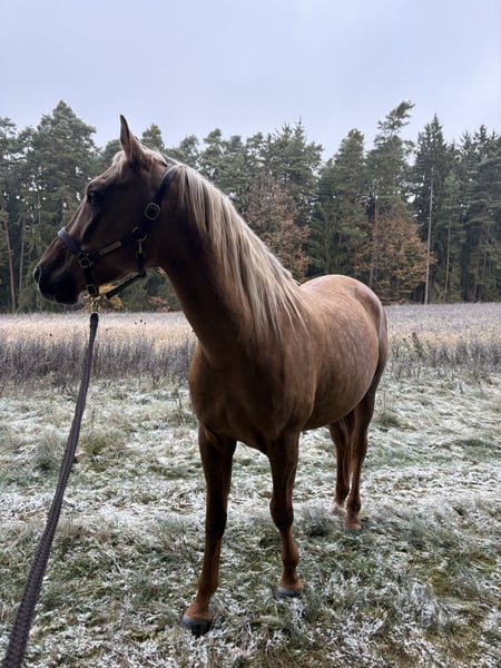 Schweren Herzens müssen wir uns von unserem Nuestro trennen. Nuestro ist 4 Jahre jung, etwas über 1,70 groß und ein Lusitanowallach. Er geht barhuf und ist vom Wesen ein kleiner Quatschkopf. Im Umgang ist er der größte Schatz, den man sich nur vorstellen kann. Er hat keinerlei Unarten und ist eher etwas sensibel, aber total unerschrocken. Er lässt alles mit sich machen, Putzen, Hufe geben, Abduschen, Führen, Spazieren, Hufschmied und Verladen stellen kein Problem dar. Er läuft brav alle Gangarten unter dem Reiter. Das Ausreiten zu zweit kennt er ebenfalls bereits, als Handpferd geht er auch super brav mit. Er wurde auch schon am Platz sowie im Gelände von einem 10 jährigen Mädchen geritten und passt hier immer gut auf sie auf, weshalb wir ihn uns auch teilweise für ein Mutter-Kind Gespann vorstellen können. Jedoch ist er altersentsprechend nicht als reines Kinderpferd oder Anfänger geeignet. Der Grundbaustein wurde gesetzt, jetzt kann Nui‘s Ausbildung richtig beginnen. Ideal für Menschen die gerne selber ausbilden möchten. Nui war ein Kehlkopfpfeifer, was aber operativ im November behandelt worden ist. 2026 startet er wieder voll ins Training. Ein großes Blutbild ohne Mängel liegt vor. Asthma wurde ausgeschlossen. Sämtliche Befunde können eingesehen werden. Er kann nun ein ganz Normales Leben führen und auch in den Turniersport gehen. Wir wünschen uns ein Zuhause, in dem er so akzeptiert wird wie er ist und auch weiter gefördert wird. Nui hat viel Spaß bei der Bodenarbeit, Ausritten und auch das Springen macht er liebend gern. Er wird nur in eine Wallachherde abgegeben, da er bei Stuten dazu neigt, sie zu beissen (aber nicht bei jeder). Sein Zubehör sowie ein angepasster Sattel kann separat erworben werden. Ein Probereiten wird erst ab Januar 2026 möglich sein. Platz vor Preis! Uns ist wichtig das er in beste Hände kommt. Bei Fragen gerne unter 0176 56861716 anrufen