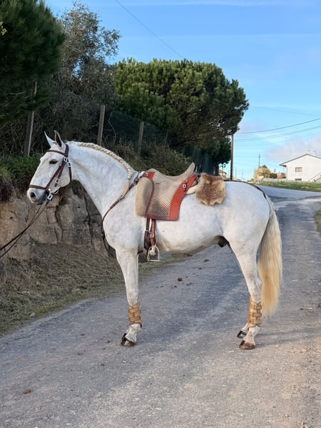 ✨QUERUBIM✨ Sympathischer Lusitano-Wallach für Freizeit und Dressur mit ehrlichem Charakter QUERUBIM Merkmale: - Rasse: Lusitano - Geschlecht: Wallach - Geburtsjahr: 2020 - Farbe: Schimmel - Stockmaß: 1,54m ⸻ Mit QUERUBIM steht ein sehr sympathischer Lusitano-Wallach zum Verkauf, der sich durch seinen freundlichen Charakter, seine angenehme Rittigkeit und seine solide Grundausbildung auszeichnet. Ein ehrliches Pferd, das sich besonders gut für Freizeitreiter oder Reiter mit dem Wunsch nach einem unkomplizierten Partner eignet. ⸻ 🧬 Abstammung: ✨ Vater: URCO • gekört mit 67,5 Punkten • aus der bekannten Veiga-Linie, die für Rittigkeit, Charakter und Arbeitswillen geschätzt wird ✨ Mutter: MANZANA • gekört mit 77,51 Punkten • eine außergewöhnlich hoch bewertete Lusitano-Stute mit viel Qualität ➡️ Eine interessante Kombination aus Lusitano-Genetik und sehr guter Mutterlinie. ⸻ 🎓 Ausbildungsstand: QUERUBIM wird seit etwa einem Jahr unter dem Sattel geritten und kennt bereits: • Schritt, Trab und Galopp unter dem Reiter • grundlegende Arbeit auf dem Reitplatz • ruhiges und kooperatives Verhalten beim Reiten ➡️Er zeigt sich dabei ehrlich, brav und angenehm zu reiten. ⸻ 🐎 Typ & Bewegung: • kompakter, harmonischer Lusitano-Typ • angenehme, gut zu sitzende Bewegungen • gute natürliche Balance • solide Grundlage für die weitere Ausbildung ➡️Ein Pferd, das sich besonders für entspanntes Reiten und Freizeit eignet. ⸻ 🧠 Charakter: • freundlich und menschenbezogen • ehrlich im Umgang • ruhig und unkompliziert • angenehmes Temperament ➡️Ein sehr netter Lusitano-Wallach, der seinem Reiter Vertrauen schenkt und gerne mitarbeitet. ⸻ 🩺 Gesundheit: • Röntgenbilder vorhanden • Befund an den Sprunggelenken vorhanden ➡️Aufgrund dieses Befundes wird QUERUBIM zu einem sehr attraktiven Preis angeboten, ist jedoch problemlos reitbar. ⸻ 🎯 Für wen ist QUERUBIM geeignet? • Freizeitreiter • Reiter, die einen ehrlichen und unkomplizierten Lusitano suchen • Menschen, die ein braves Pferd für entspanntes Reiten möchten ⸻ ⭐ Fazit: QUERUBIM überzeugt durch: ✔️ freundlichen Charakter ✔️ solide Grundausbildung ✔️ ehrliche Rittigkeit ✔️ interessante Abstammung ✔️ sehr attraktives Preis-Leistungs-Verhältnis ➡️Ein sympathischer Lusitano-Wallach für Reiter, die einen ehrlichen Partner für entspannte Ritte und Freizeit suchen. ⸻ 📞 Kontakt & Besichtigung QUERUBIM kann nach Vereinbarung besichtigt und probegeritten werden. Ich freue mich auf ernsthafte Anfragen und nehme mir gerne Zeit für ein persönliches Gespräch.