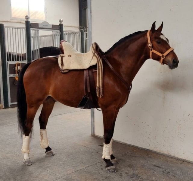 Magnificent Lusitano-Arabian horse, a true gem both for its quality and its temperament. It stands out for its nobility, balance, and ease of handling, making it an ideal companion both ridden and during daily ground work. This horse is very pleasant, with a cooperative attitude and a great willingness to work, which makes it perfect for enjoyable, trouble-free riding. It has good movement, is comfortable to ride, and responds softly, making it ideal for riders seeking confidence and connection. On the ground, it is equally exceptional: respectful, calm, and easy to handle in all situations. It adapts perfectly to family life, whether for leisure, hacking, or as a family pleasure horse. A unique opportunity for those looking for a well-rounded horse with a good heart, ready to become part of a home that values its quality and nobility.