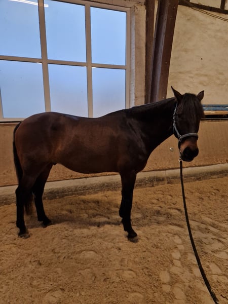 We are looking for a wonderful new home for our 7-year-old Lusitano gelding. Pinot is a true gem—absolutely well-behaved in handling, including during veterinary visits, farrier work, loading, rinsing, etc., he is exemplary. He has an excellent pedigree and very good basic gaits, with a height of approximately 1.64 meters. He is always motivated when working on the ground, whether lunging, training with dual reins, work in hand, or desensitization exercises. Liberty work is his favorite discipline. Pinot is exercised daily in the field. Whether on a walk or a ride, he remains relaxed. He stays calm around dogs, joggers, bicycles, tractors, and trains. In dressage, he is equally motivated and well-behaved in all gaits. His dressage training still needs to be further developed. In Portugal, he was mostly ridden in the terrain. He has already learned quite a bit with us. He would also be very suitable for working equitation. His new owner should not be a beginner and ideally have some experience with the breed. Pinot is compatible with other horses and has no bad habits. In Portugal, he was kept in an open stable. With us, he lives in a large box with daily turnout alongside his friends. Strict box confinement is not an option for him. He is barefoot (front and hind shoes have been adapted), vaccinated, dewormed, and free of eczema. His teeth have been checked and he has received osteopathic treatment. If you are genuinely interested, please feel free to contact us for more information.