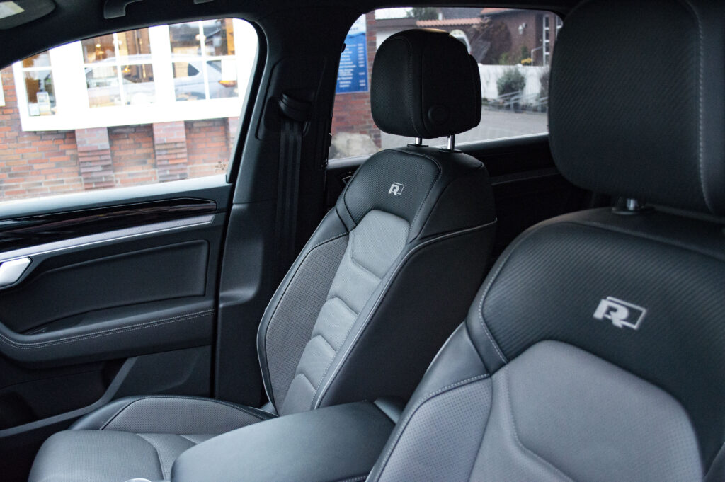 Der neue Touareg von VW ist ein echter Platzgigant! Als große Fahrerin hat mich nicht nur die Beinfreiheit vorne beeindruckt, sondern auch auf der Rücksitzbank haben groß gewachsene Mitfahrer viel Platz! Die Sitze haben mich total begeistert – super bequem, komplett individuell einstellbar. Als absolute Dauernutzerin der Sitzheizung war das mir noch unbekannte Feature der Sitzbelüftung eine neue Erfahrung – sogar in Kombination mit der Sitzheizung ist sie sehr zu empfehlen.