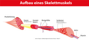 Bild: Die kleinsten Untereinheiten im Muskel sind Myosin und Aktin. Sie wiederum bestehen aus Ketten von über 300 Aminosäuren.