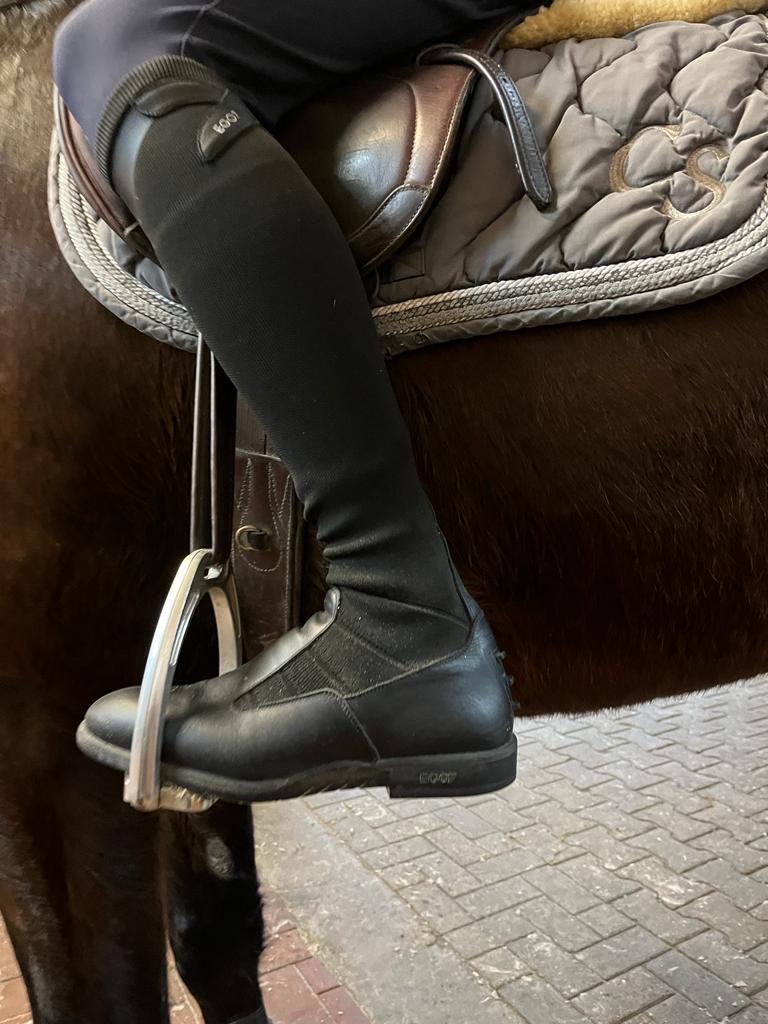 Mittlerweile reite ich schon seit einiger Zeit mit den ego 7 Reitstiefeln. Im Alltag tausche ich immer mal mit meinen anderen Stiefeln und bin jedes Mal wieder begeistert darüber, was für ein super Gefühl ich mit den ego7 Stiefeln habe – auch wenn meine normalen Stiefeln ebenfalls von sehr hoher Qualität sind und ich immer sehr zufrieden mit ihnen war/bin. Der Grip der ego7 Stiefel ist top und sie fühlen sich an wie eine zweite Haut – die aber zusätzlichen Halt gibt. Ich kann also mein erstes positives Feedback absolut bestätigen und werde tatsächlich häufig auf die Stiefel angesprochen. Ich nutze sie sowohl in der Dressur, im Stangenparcours und bin mit ihnen auch schon Geländesprünge geritten.