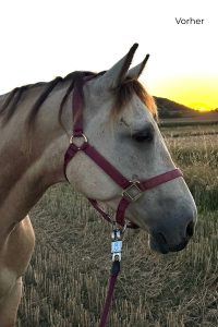 Alles begann mit der Weidezeit, als die ersten Koliksymptome auftraten. Eine Kolik konnten wir zum Glück vermeiden – aber die Empfindlichkeit im Bauchbereich sowie ein zunehmender Sattelzwang sind geblieben. Die Symptome wurden zwar mal stärker und mal schwächer, verschwunden sind sie jedoch nie ganz. Nach dem Wechsel zurück in den Stall fing er außerdem an, sich verstärkt an Mähne und Schweif zu schubbern. Zusätzlich hatte ich schon lange das Gefühl, dass sein Blick immer irgendwie angespannt und besorgt wirkte. Für mich war klar: Ich muss etwas tun, damit es ihm langfristig besser geht.