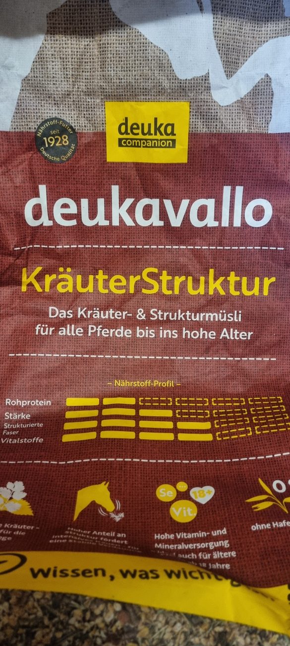 Das deukavallo KräuterStruktur riecht angenehm nach frischen Kräutern und wurde von unserem Pferd sehr gut angenommen. Wir werden es auf jeden Fall als Ergänzung zur normalen Krippenration wieder füttern.