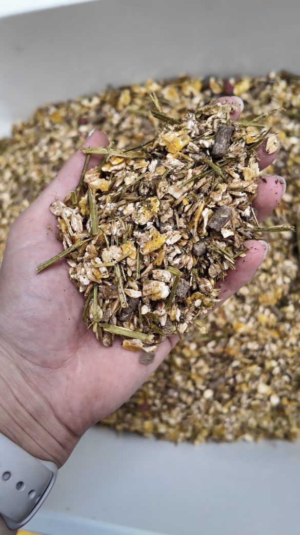 Ein wichtiger Aspekt ist der hohe Anteil an Luzerneheu. Dieses fördert das Kauen und verlängert die Fressdauer, was die Verdauung unterstützt. Da mein Pferd eher hastig frisst, wirkt das strukturierte Futter regulierend. In Kombination mit Mariendistelöl und Leinsamen verbesserte sich die Verdauung spürbar – besonders wertvoll für ältere Pferde.