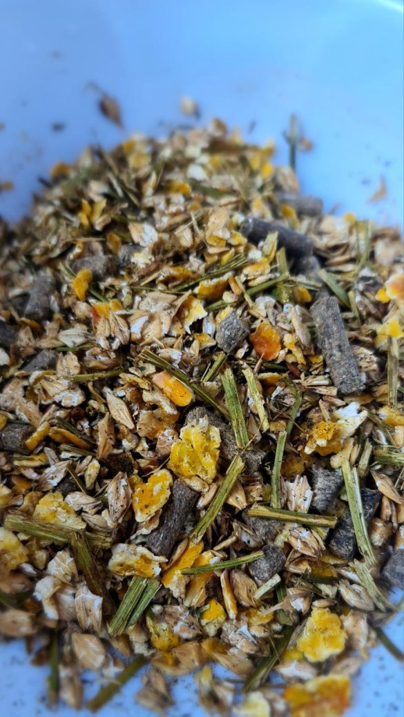 Luzerne, Maisflocken und Gerstenflocken helfen zusätzlich bei der Zunahme.