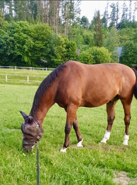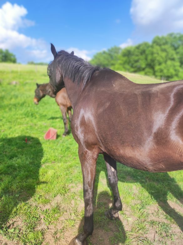 Insgesamt gefällt mir mein Pferd im Gesamtbild sehr gut: Er hat für sein Aktivitätslevel ein gutes Gewicht und sieht auch im Fell glänzend und gepflegt aus – durch eine gute Abstimmung von Futter und Pflege.