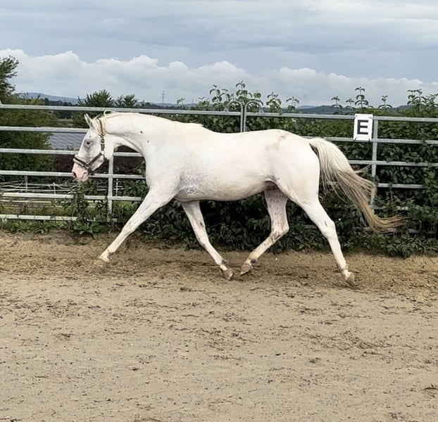 Yegua tigrada de pelaje blanco homocigota. Lp/Lp, Patn1/Patn1, A/A, E/e, D/nd2. Está preñada de Lord Europe para 2026. De esta cría solo puede nacer un tigre marrón o un tigre marrón pálido. Es tranquila y fácil de manejar, bien longeada, no montada. Es apta para el libro de cría 1 en Alemania y sus crías también pueden ser registradas en Kwpn Reg. A. En el documento se puede ver la ascendencia del potro. Es tranquila con el herrador y viaja relajada en el transporte.