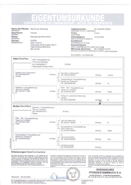 Hello, you can choice which horses .....2 Mangalarga Marchador for 9000€ All with passeport . Reinisches pferdestammbuch Boys : Rio 4 year/ Macho 2 year, stallion Girls: Helena, 3 year / Beauty , 3 year Look FB For photo or send a message I stop breeder.