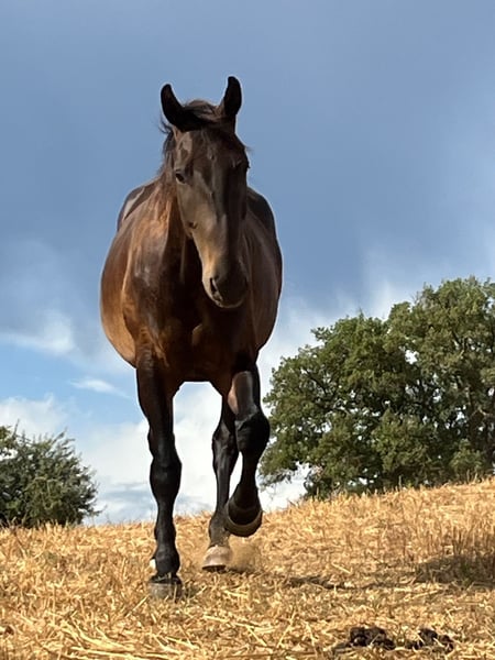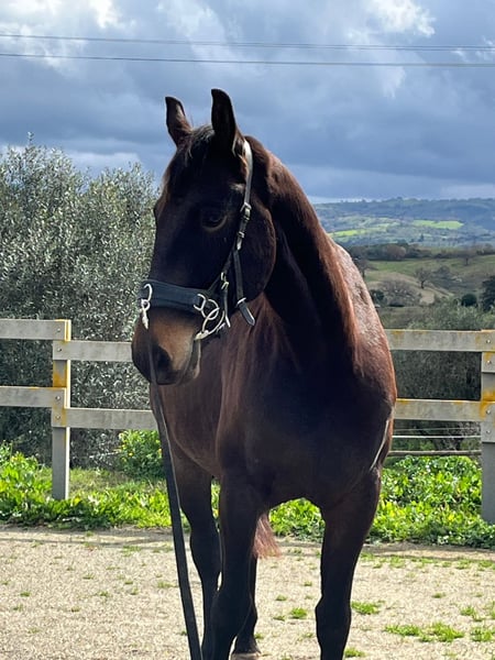 Maremmano gelding born in July 2021. Estimated height around 16.1 hh. Novecento impresses with his curiosity and trustfulness. He is accustomed to walking alone, and is familiar with tractors, dogs, and umbrellas. Character-wise, he is a true dream horse! Novecento has been raised in a species-appropriate herd environment. He lives with his father and four other geldings in a small herd, is very sure-footed, and has excellent conformation. He willingly gives all four hooves, knows the hoof trimmer, stands calmly tied, and enjoys being groomed. He has recently started walking and trotting under saddle and is very well-behaved, but still at the very beginning of his training! For questions, I am happy to provide more information at any time. He will only be sold to someone who comes to meet him in person first. Location: Grosseto, Tuscany, Italy. Transport options are available.
