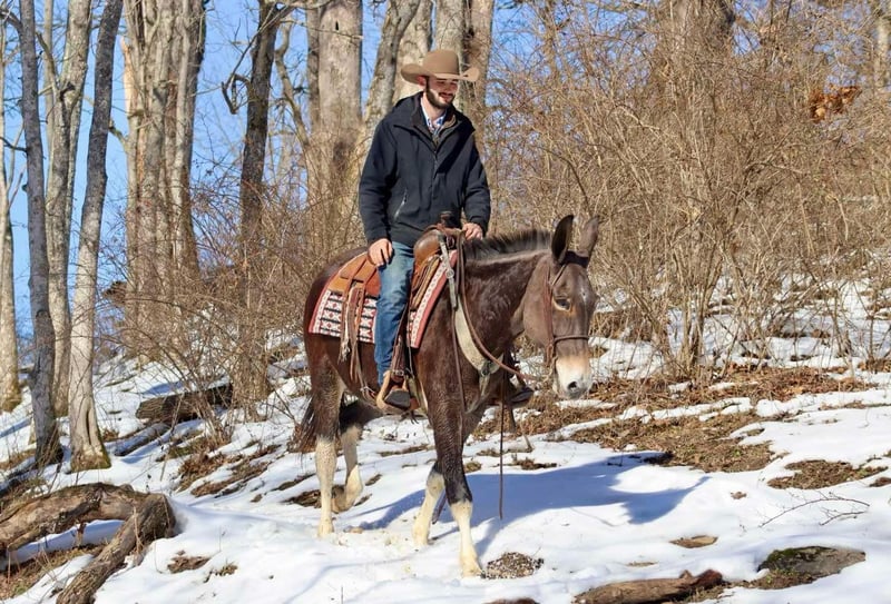 ONLINE AUCTION Place your bids at www.PlatinumEquineAuction.com Starting Bid $3500 Auction ends February 3rd, 2025 Need a new saddle? Check out White Rock Saddles on our website or Facebook! Trixie is a 15.2 hand, 10 year old Molly mule. She is a big, eye catching Molly! Trixie has a nice, ground covering walk that gets you down the trail. She rides out alone or with a group. Alone, Trixie rides out confidently. She easily crosses water, slides down banks, steps over logs, and goes through ditches. She will ride across bridges as well. Trixie rides out with a group. She will lead or follow with no issues. When leading, she keeps a nice pace and when following, she doesn’t try to overtake the horses or mules in front of her. If riding with younger horses and mules, Trixie offers confidence to them. You can ride Trixie English or western with no issues. Previously, Trixie was used for English lessons for intermediate riders. Trixie hauls well by herself or with others. She loads and unloads easily. She is good to bathe and doesn’t mind the clippers. She also gets along well turned out in the herd. Trixie is a nice, big, solid molly that is a safe and dependable trail riding partner. She is ready to hit the Arizona winter riding trails! For more information please call or text Sammi Waugh 704-798-5497 Located in Brooksville, KY. ONLINE AUCTION Place your bids at www.PlatinumEquineAuction.com Starting Bid $3500 Auction ends February 3rd, 2025 Need a new saddle? Check out White Rock Saddles on our website or Facebook!