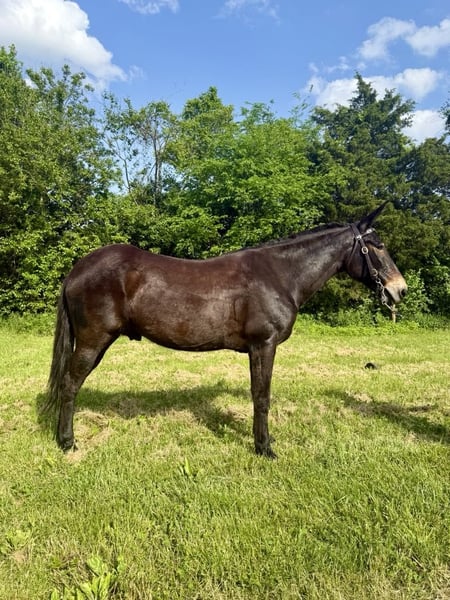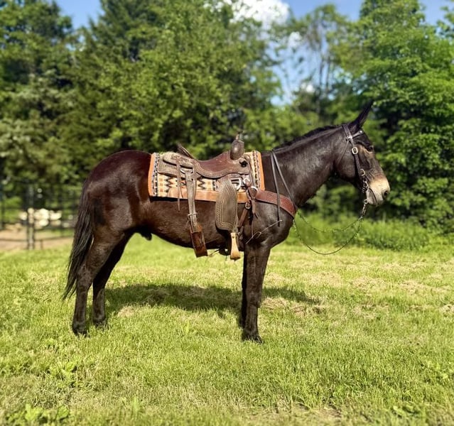 ONLINE AUCTION Place your bids at www.PlatinumEquineAuction.com Starting Bid $3500 Auction ends June 1st, 2025 Need a new saddle? Check out White Rock Saddles on our website or Facebook! Garth is a 13 year old John mule that stands 15.1 hands tall. This is well trained mule with uncountable trail miles. He is a kind mule that aims to please and loves people. Garth is awesome and the trail and very sure footed. He doesn’t look for imaginary things to spook at and is traffic safe. He is fine with trail dogs, rides out alone and in groups of any size. This mule walks calmly on a loose rein, has a nice collected trot and a very smooth canter. He crosses down trees patiently and maneuvers himself with confidence on the rough trails. Garth is over all a nice quiet trail mount that is safe and appealing to the eye. He is a really nice build and is comfortable to sit. Located in Moscow, OH. Contact Brandenburg Stables Zach 513-508-3684 with any questions, to make a Buy It Now Offer or to set up a time to come see him. ONLINE AUCTION Place your bids at www.PlatinumEquineAuction.com Starting Bid $3500 Auction ends June 1st, 2025 Need a new saddle? Check out White Rock Saddles on our website or Facebook!