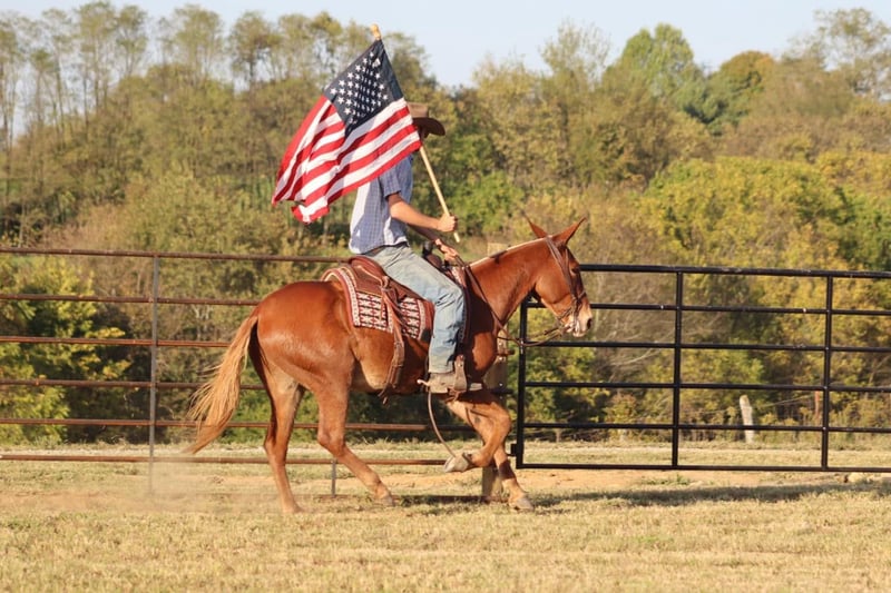 ONLINE AUCTION Place your bids at www.PlatinumEquineAuction.com Starting Bid $3500 Auction ends October 27th, 2024 Need a new saddle? Check out White Rock Saddles on our website or Facebook! Jesse is an 8 year old, 15 hand John mule. He is a well trained, well rounded ranch mule. He has worked in many areas on the ranch from gathering and sorting cattle, to dragging calves to the fire, to loading trucks. He keeps his cool in busy situations and handles himself nicely. He walks and jogs nicely and he has a very comfortable and easy lope. Jesse neck reins very well. He backs and side passes as well. You can open and close gates on him too. He is excellent on the trails. Surefooted and he gives you a confident feeling on all types of terrain. Jesse has lead a smaller pack string. He has spent a couple summers at cow camp and seen that big country and does well with it. If you’re looking for a solid mule to get you down the trail or to put in a days worth of work, Jesse is the mule for you! For more information, please call Jon Waugh 606-748-9721 Located in Brooksville, KY. ONLINE AUCTION Place your bids at www.PlatinumEquineAuction.com Starting Bid $3500 Auction ends October 27th, 2024 Need a new saddle? Check out White Rock Saddles on our website or Facebook!