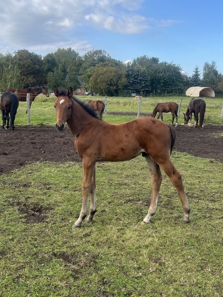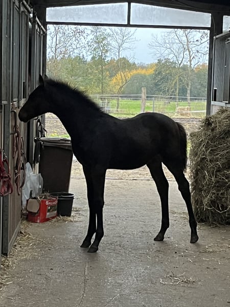 Qualità semplicemente TOP. Nuove foto su richiesta. Attualmente è di un intenso colore castano scuro, come la madre. Nato il 20/07/2025. Discendenza del padre: https://www.horsetelex.com/horses/pedigree/2369738/up-van-t-paradijs-tn