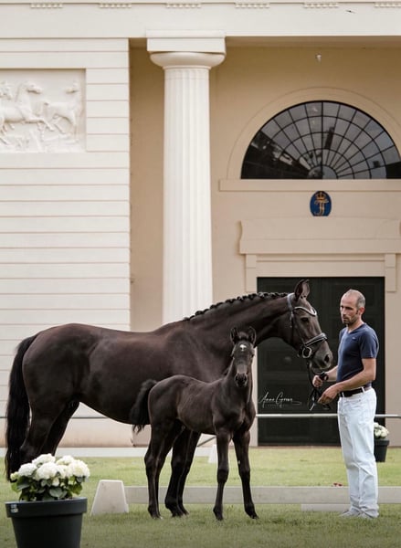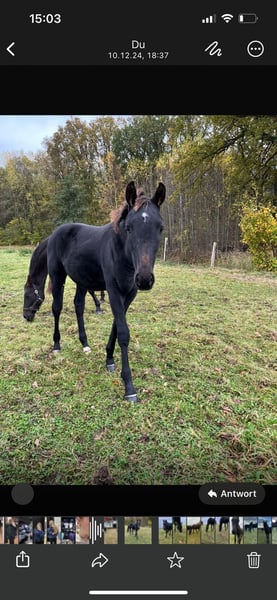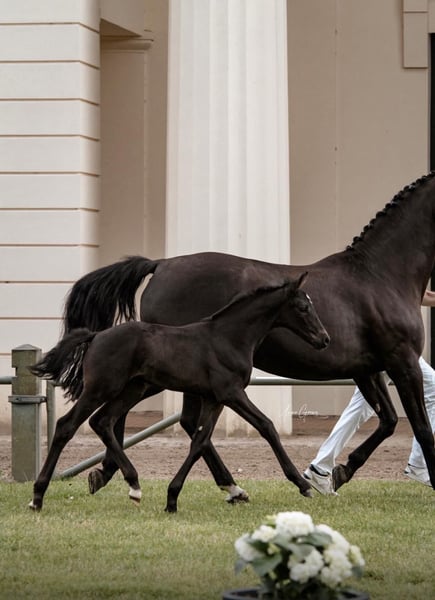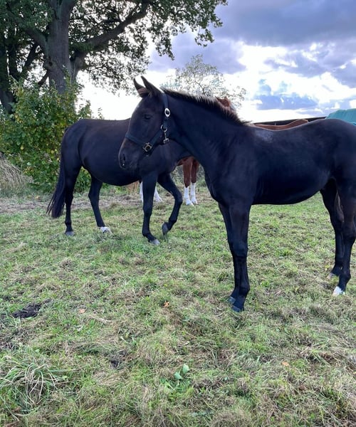 Secrets Love est notre magnifique poulain stallion, qui cherche désormais un nouveau foyer. Son pedigree, Secrets Star × D'Olympic, ne passe pas inaperçu, tout comme son corps noble, associé à ses mouvements fins et élégants. Lors du foal show 2024 à Redefin, il a conquis tous les spectateurs et a remporté la première place chez les hongres avec des notes de 9 pour le type, 8,5 pour l’extérieur et 9 pour le mouvement. Il s’est également qualifié pour le championnat des poulains à Groß Viegeln, où il a été classé comme bon poulain et a obtenu le titre de poulain d’élite. Il se trouve actuellement sur un paddock réservé aux hongres, profitant pleinement de sa vie avec ses compagnons. Il est vif, curieux, affectueux et désireux d’apprendre, toutes qualités que l’on peut attendre d’un cheval. Il connaît déjà l’alphabet du poulain et aborde tout sans problème.