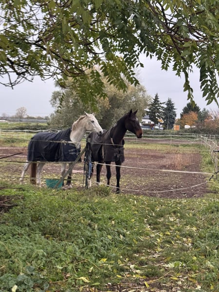 Suche eine Reitbeteiligung für meinen 9-jährigen Wallach. Loui ist ein Mecklenburger Wallach mit einer sehr guten Springmanier. War bevor ich ihn bekam L platziert. Ich selbst habe durch ihn wieder mit dem Springen angefangen und habe durch ihn viel dazugelernt. Dressurmässig war er relativ „grün“ hinter den Ohren, ist aber auf einem sehr guten Weg. Geländeritte liebt er. Auf Turnieren ist er völlig unerschrocken. und gerade im Springen absolut verlässlich. Bin mit ihm mehrere Turniere die letzten 1,5 Jahre gestartet. Ich selbst hatte aber nie den Mut für mehr als ein E-Springen - Loui kann deutlich mehr….. In der Dressur muss er noch konstanter in der Anlehnung werden, gibt sich alles in allem sehr viel Mühe. Bin beruflich zurzeit sehr eingespannt und suche jemanden der 2-3x pro Woche Lust hat mit Loui zu arbeiten. Mir ist die klassische und vor allem reelle Reitweise sehr wichtig. Wenn die Chemie stimmt, ist es durchaus denkbar evtl auch auf Turnieren zu starten. Transporter ist ebenfalls vorhanden.