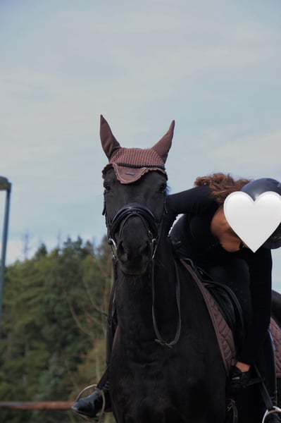 Our beautiful ten-year-old black mare is, with a heavy heart, looking for a new home. Mirabell is a horse that gives everything for her person and strives with all her soul to please her rider. That’s why we wish for someone who approaches her with love, calmness, and experience, and gives her the attention she deserves. Mirabell is a sensitive, strong-willed mare who picks up on her rider's mood very accurately. With a calm and experienced person by her side, she shows herself to be motivated, cooperative, and full of joy – a horse that would go through fire for the right person. She particularly enjoys jumping and has a lot of potential in this discipline; in dressage, she is steadily developing and is additionally worked on once a week by an experienced rider for corrections. She is also a reliable companion in the outdoors, going along calmly, and she responds very well to lunging. She hasn’t really gained much competition experience yet, as it hasn’t been possible for us time-wise – however, she has the abilities for it. Mirabell prefers to be in an open stable with plenty of movement, but she also copes well with box housing and regular turnout. She is currently in an all-mare herd. She is barefoot, well-behaved with the farrier, loads easily into a trailer, and is, of course, well cared for: regularly dewormed, vaccinated, and her teeth are also checked regularly. In everyday life, Mirabell is uncomplicated – she willingly gives her hooves, allows herself to be tied and groomed, and loves spending time with her person. It is especially nice that she enjoys being petted and cuddled. As she is sensitive and takes on her rider's mood, Mirabell is not suitable for beginners! Her future rider should weigh no more than 70 kg and be willing to approach her with calmness, patience, and experience. For us, the right home is more important than anything else – therefore, it is clear: home before price. To ensure that only serious interest exists, we charge €20 for trial riding, which will, of course, be deducted from the purchase price. We will only let Mirabell go to the best hands and wish for someone who loves her just as much as we do. For serious inquiries, we are happy to send videos and further information – and we hope that she will soon find the person with whom she can share her heart.