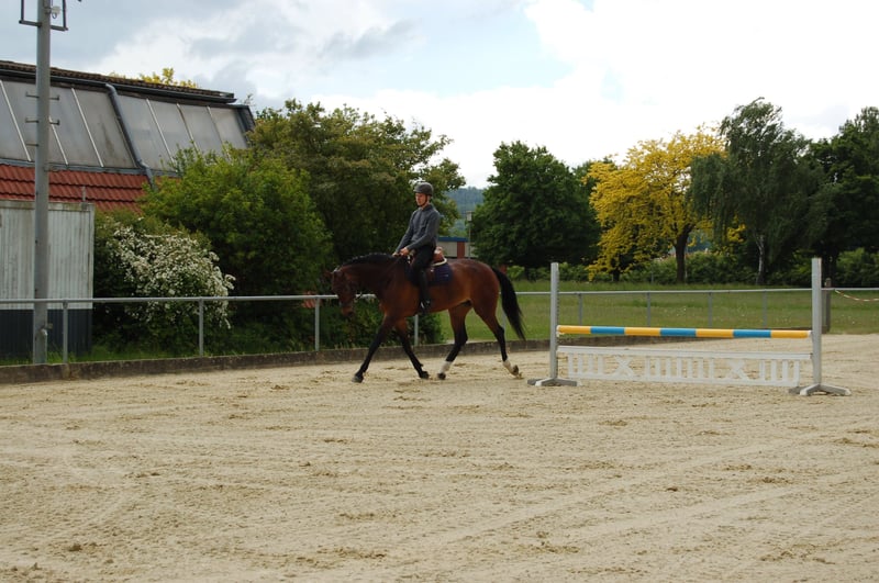 Wir verkaufen unsere liebe Stute. Sie ist Staatsprämienstute. Mit anderen Pferden und auch im Umgang ist sie sehr brav und lieb. Mein Bruder hat sie als Nachfolgerpferd von seinem Pony gehabt. Perfektes Umsteigerpferd und für Amateure und Jugendliche geeignet, da sie jederzeit einen ruhigen und liebevollen Charakter zeigt. In den letzten 3,5 Jahren ist Sie von meinem Bruder und mir bis E bis A** Springen vorgestellt worden und platziert worden. Vorher wurde Sie bis Springpferde M vorgestellt und Springpferde L platziert. Auch auf dem Turnier ist sie sehr lieb. In der Dressur ist sie bis A ausgebildet. Sie wäre auch für die Vorstellung auf Dressurturnieren geeignet. Im Gelände ist Sie sehr artig, egal ob alleine oder ob in der Gruppe. Anhänger fahren macht Sie auch sehr gut. Beim Schmied ist sie sehr brav. Regelmäßige Entwurmung und Zahnkontrollen hat Sie erhalten. Influenza, Herpes und Tetanus Impfungen hat sie regelmäßig bekommen. Bei uns steht sie im Offenstall, kennt jedoch auch Boxenhaltung. Springsattel & weiteres Zubehör kann auch mit erworben werden. Wir verkaufen Erika nur, da wir ihr zeitlich nicht mehr gerecht werden. Wir verkaufen Sie nur in gute Hände. Bei Interesse sende ich gerne Videos von Dressur und Springen und stehe für Fragen zur Verfügung.