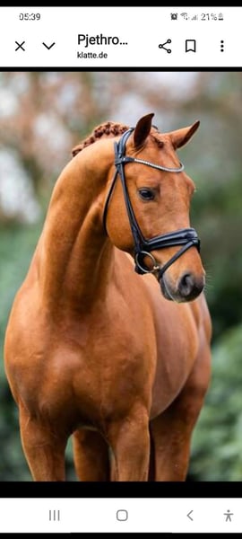 Schattige merrieveulentje van Pjethro (Kjento-Desperado) Ze is geboren in juni en beschikt over drie uitstekende basisgangen. Haar moeder is een Staatsprämienstute van Sandro Hit/Lanthan, die al zeer goede veulens heeft voortgebracht, die verkocht zijn aan Blue Horse en Schokemöhle. Een dochter van Joviam werd voor een hoge prijs verkocht aan de Verenigde Staten. Met haar karakter weet ze te overtuigen en is ze altijd aanhankelijk. Ze kent de basis van de veulens en is regelmatig ontwormd. Op de veulenschouw kreeg ze de elitepremie. Later wordt ze een prachtig paard voor de dressuursport. Ze kan ook nog bij de opfok blijven staan.