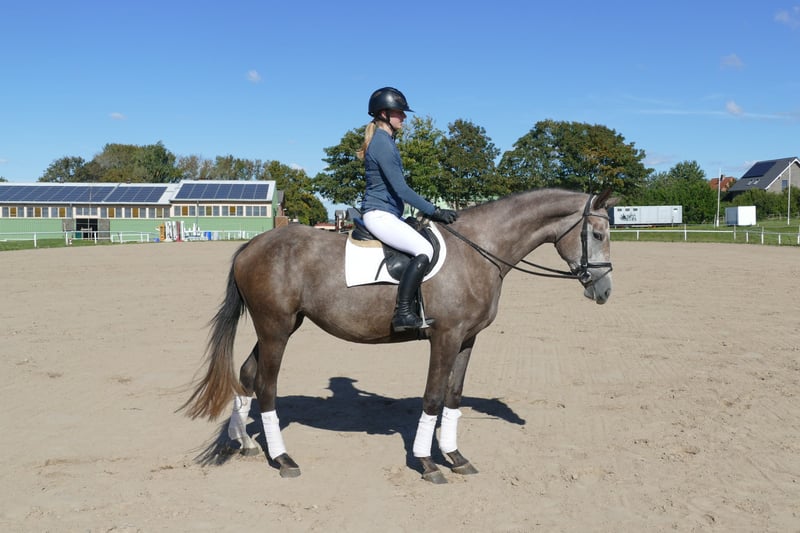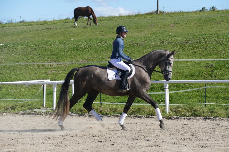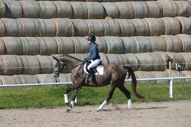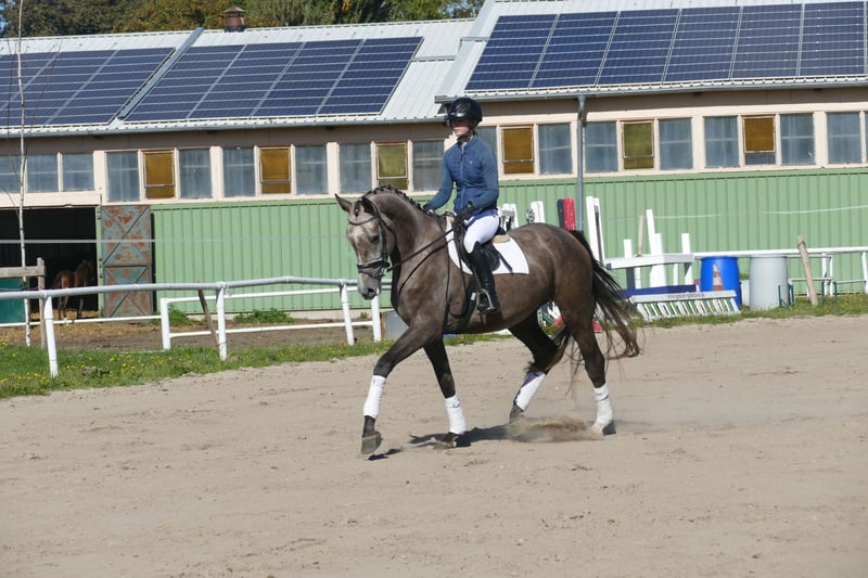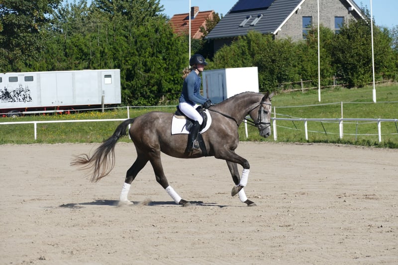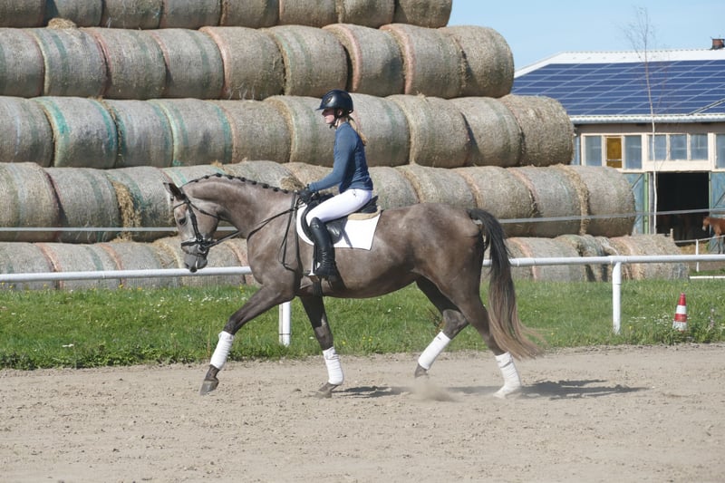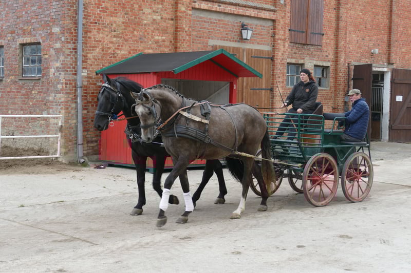 Goldblume: - A charming mare suitable for ladies' riding with a wonderful temperament - Featuring a lovely uphill neck and a beautiful head - Easy to handle with a very confident riding feel - Trained in a double harness - Goldblume was born, raised, and carefully trained at Ganschow Stud
