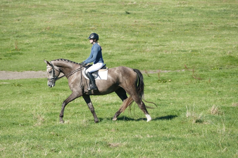 Goldblume: - Charmantes Damenreitpferd mit wunderbaren Interieur - Mit toller Bergauf Halsung und schönem Gesicht - Leicht in der Hand mit ganz sicherem Reitgefühl - Zweispännig eingefahren - Goldblume ist im Gestüt Ganschow geboren, aufgewachsen und schonend ausgebildet